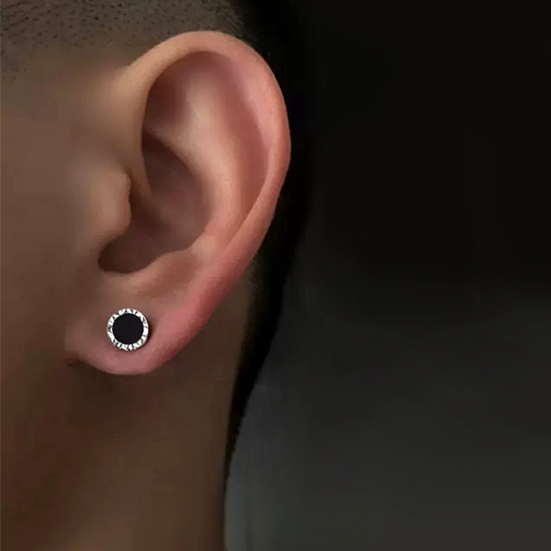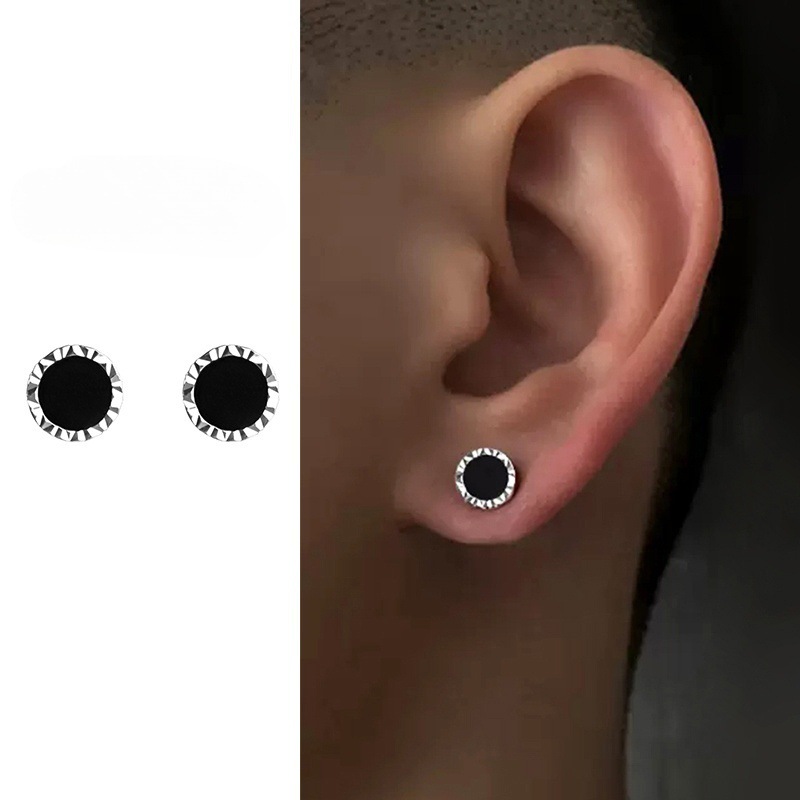 Men's Earrings, Simple Niche Handsome Style Earrings for Boys, American High-End Retro Button Earrings
