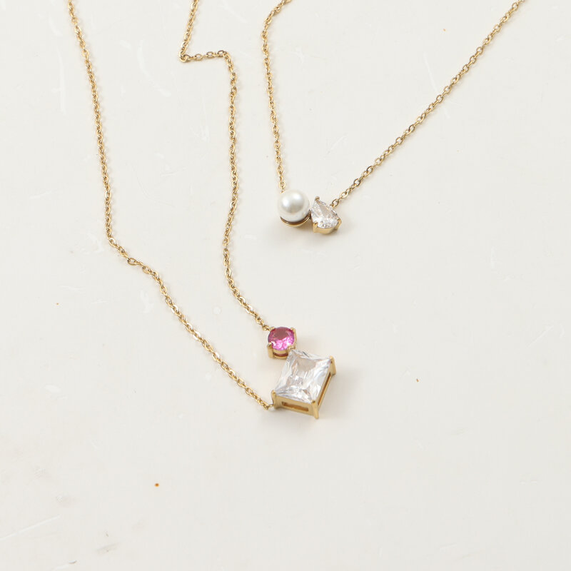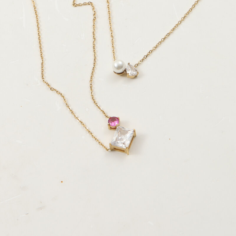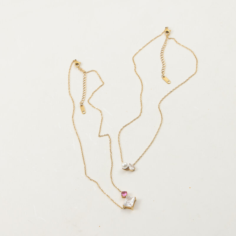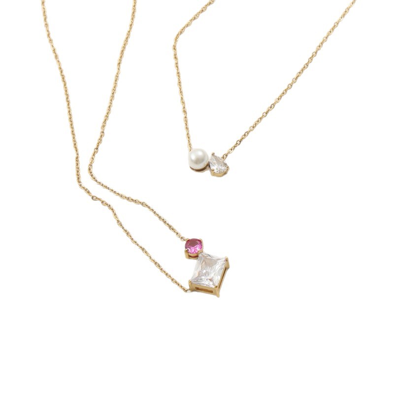Various Shapes Zircon Splicing Necklace Titanium Steel Electroplated 18K Gold