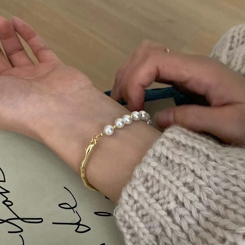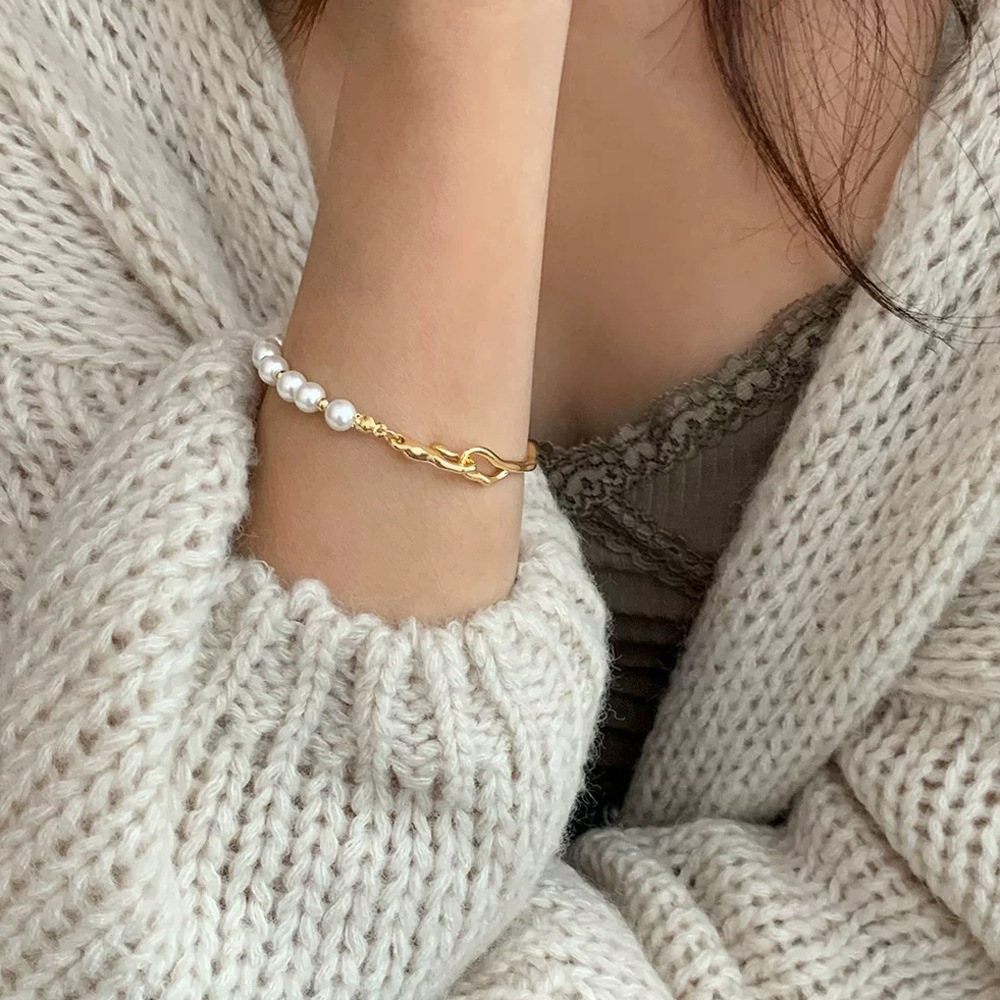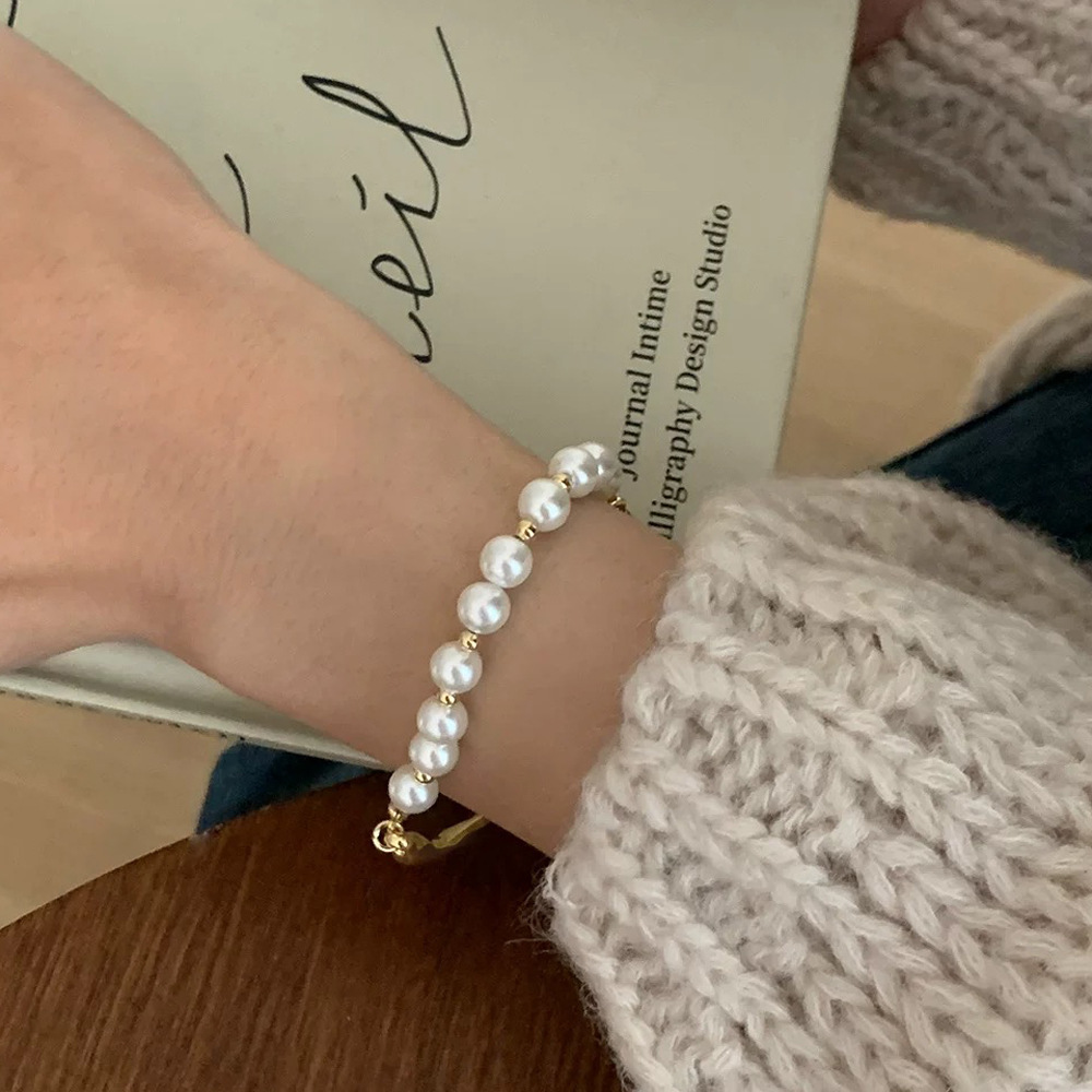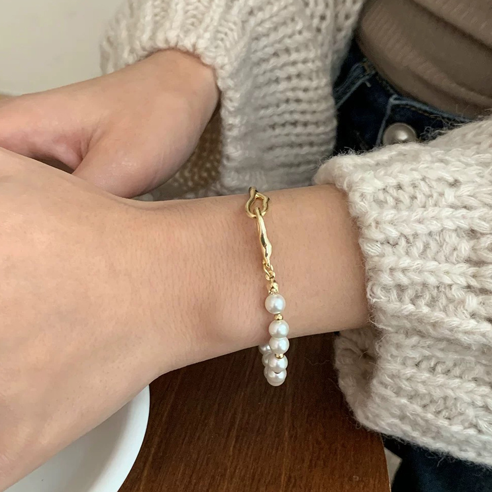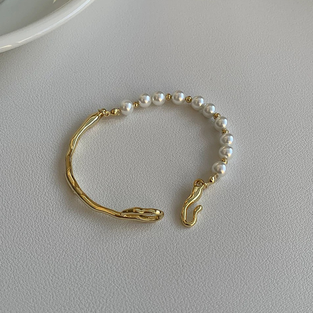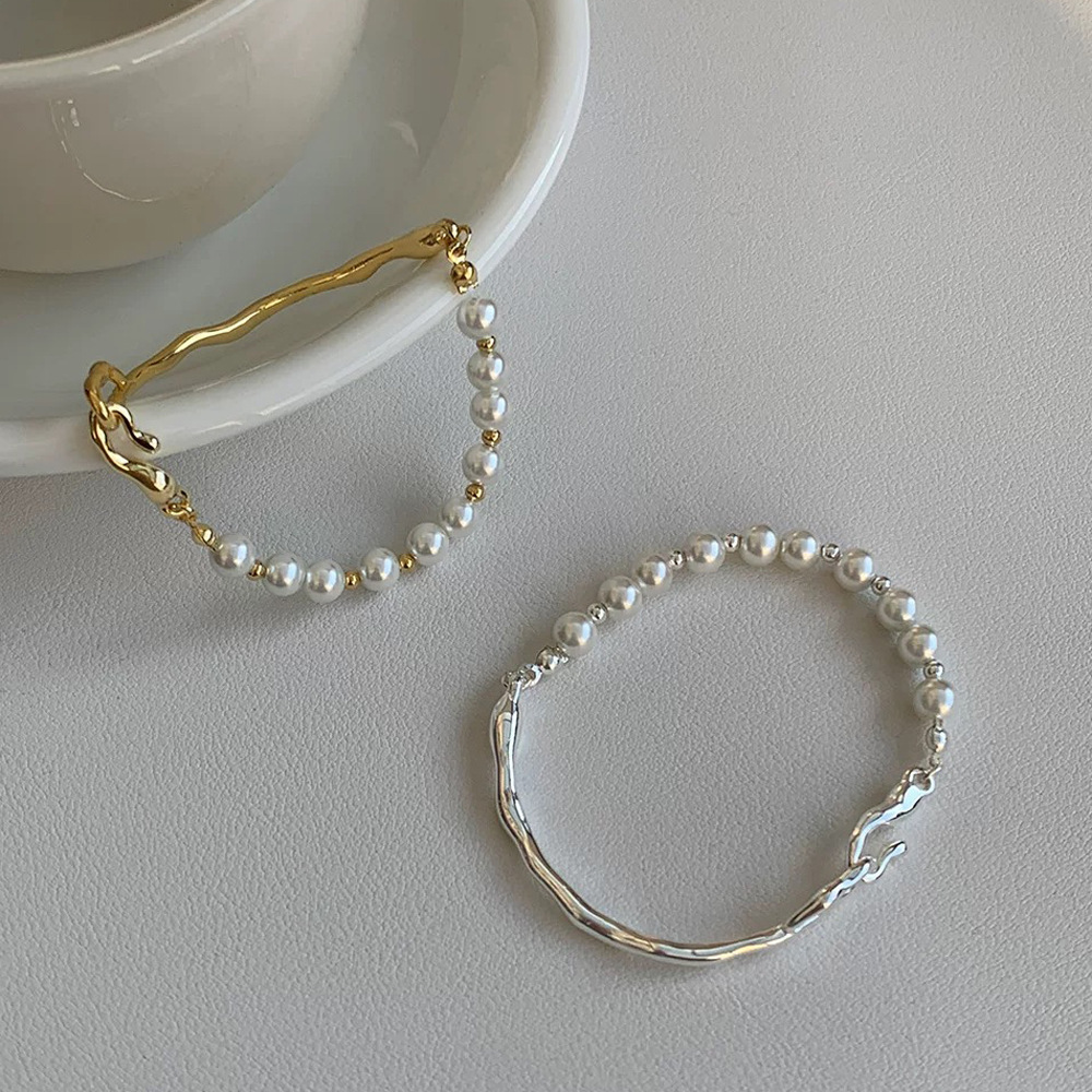 Niche Stylish Retro Design Asymmetrical Bright Pearl Bracelet Accessible Luxury Fashion High-End Elegant Hand Jewelry for Women
