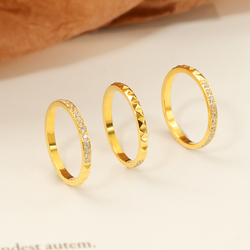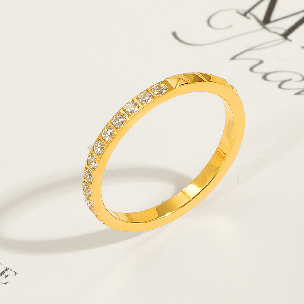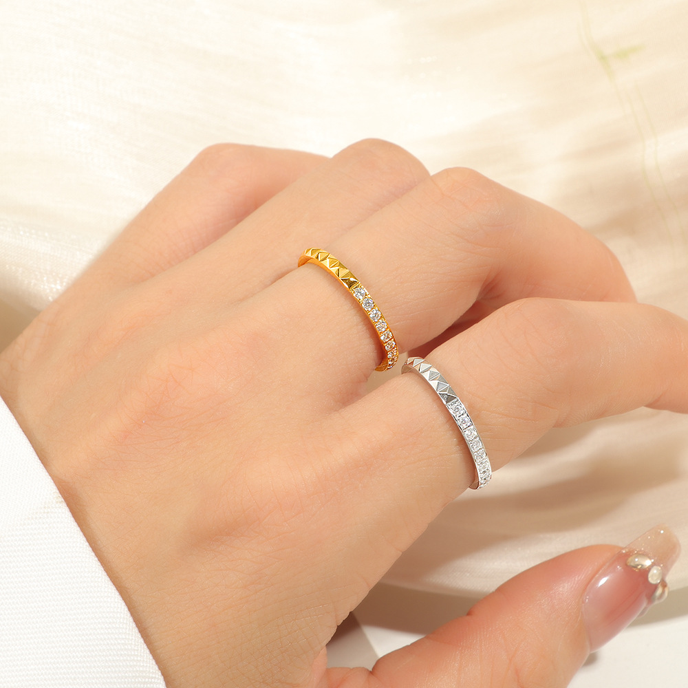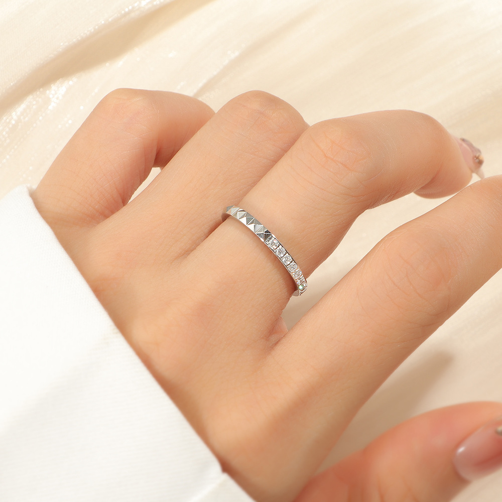 Light Luxury and Exquisite Half-Circle Diamond Rivet Titanium Steel Ring, Personalized Japanese and Korean Fashion Trend Index Finger Ring for Women That Does Not Fade