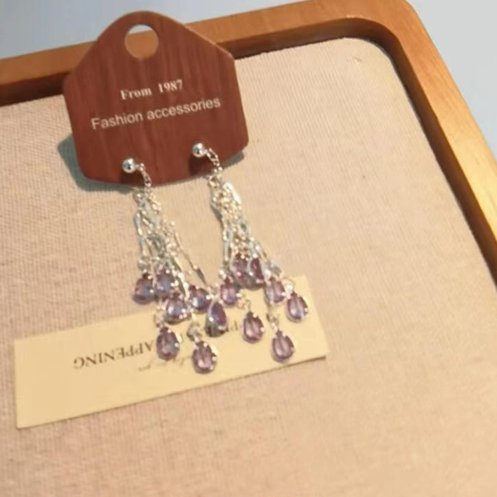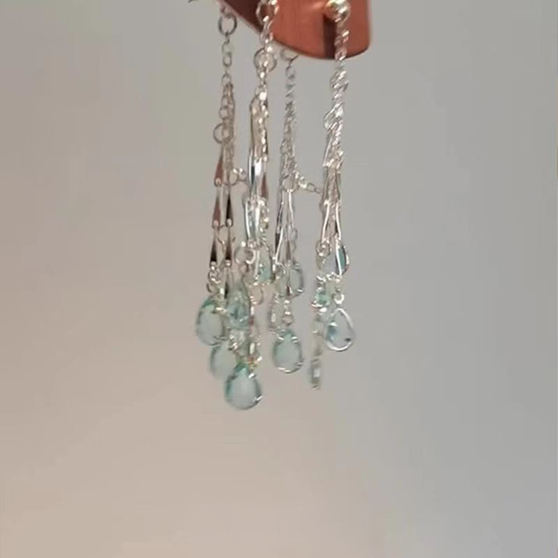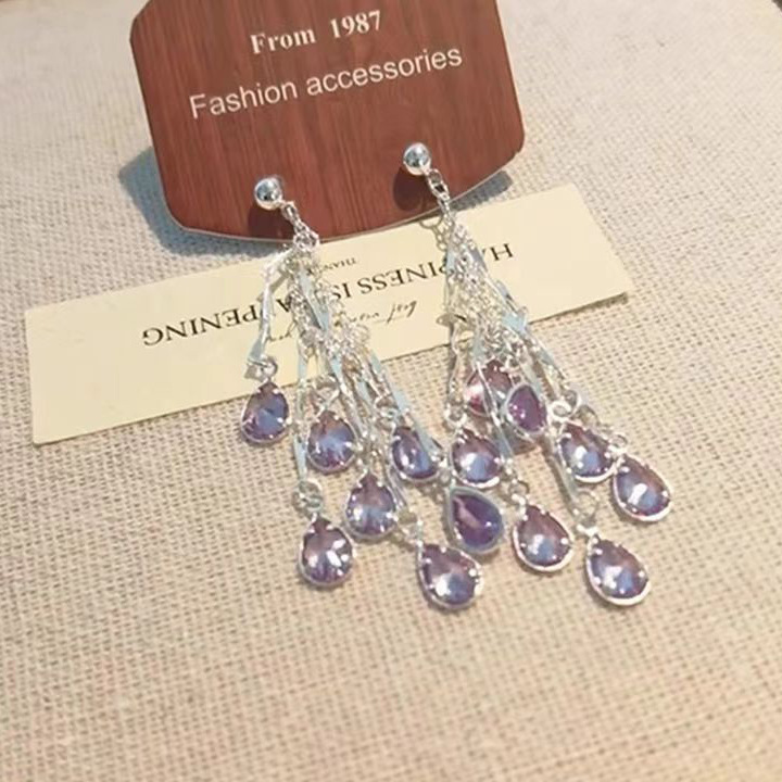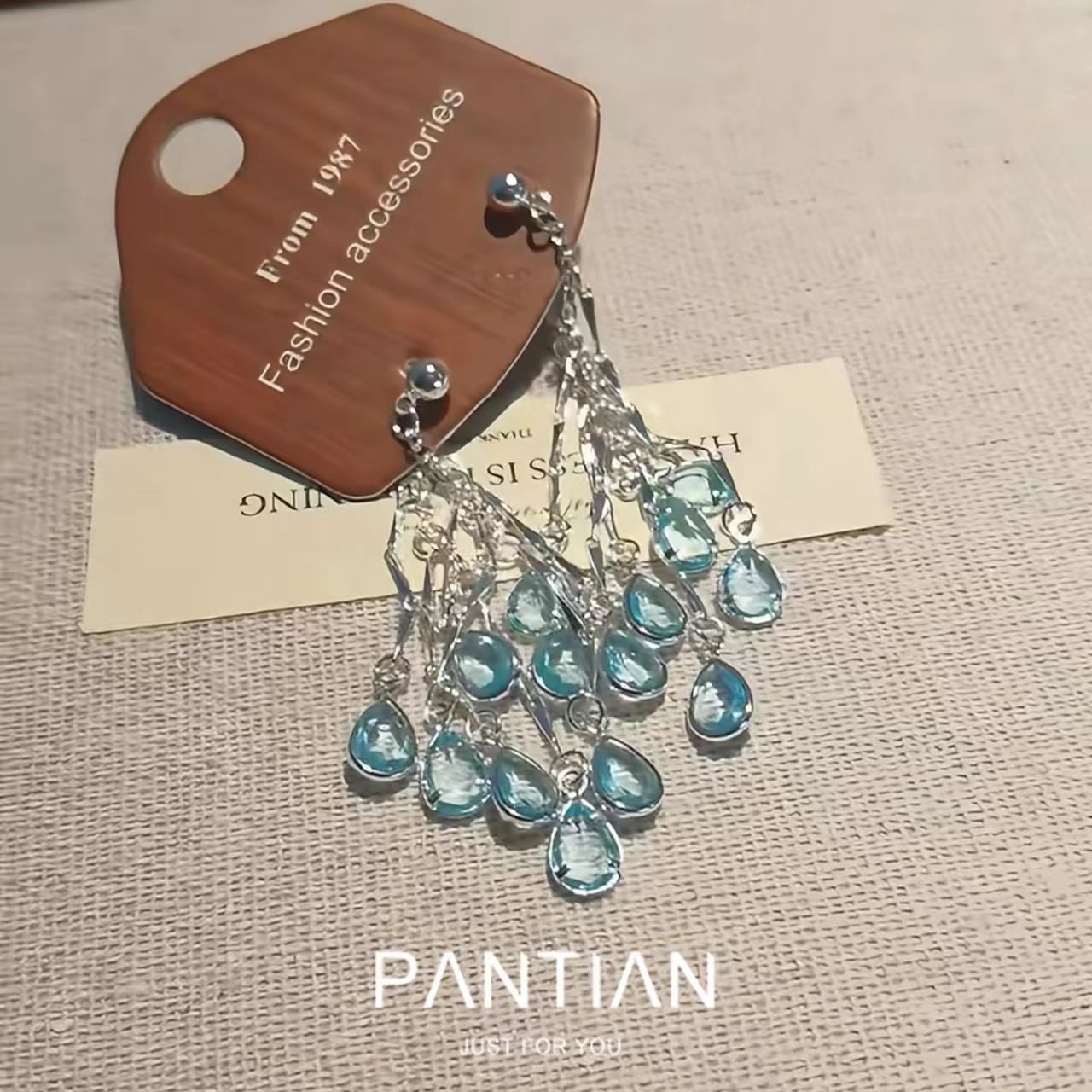 Glacier Blue Crystal Long Tassel Earrings, Feminine Grape Bunches, Beautiful, Exquisite, Light and Luxurious Design Earrings
