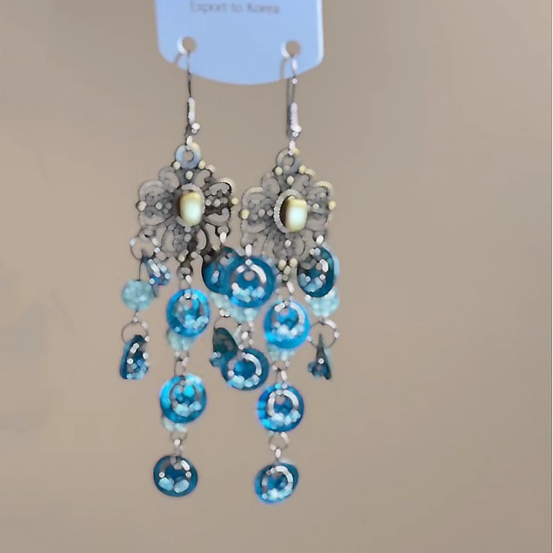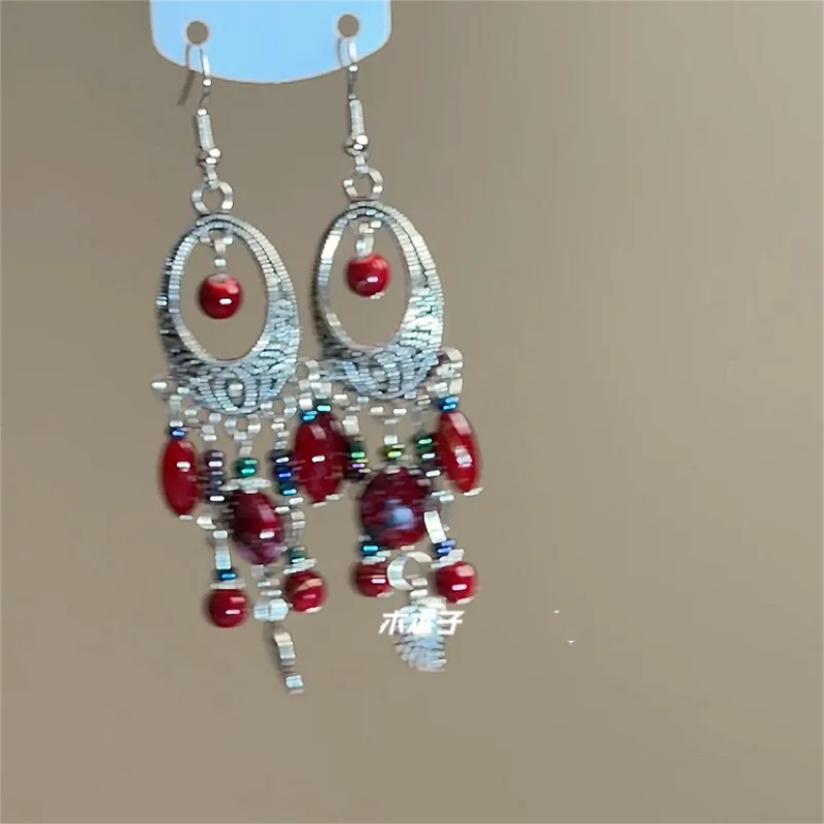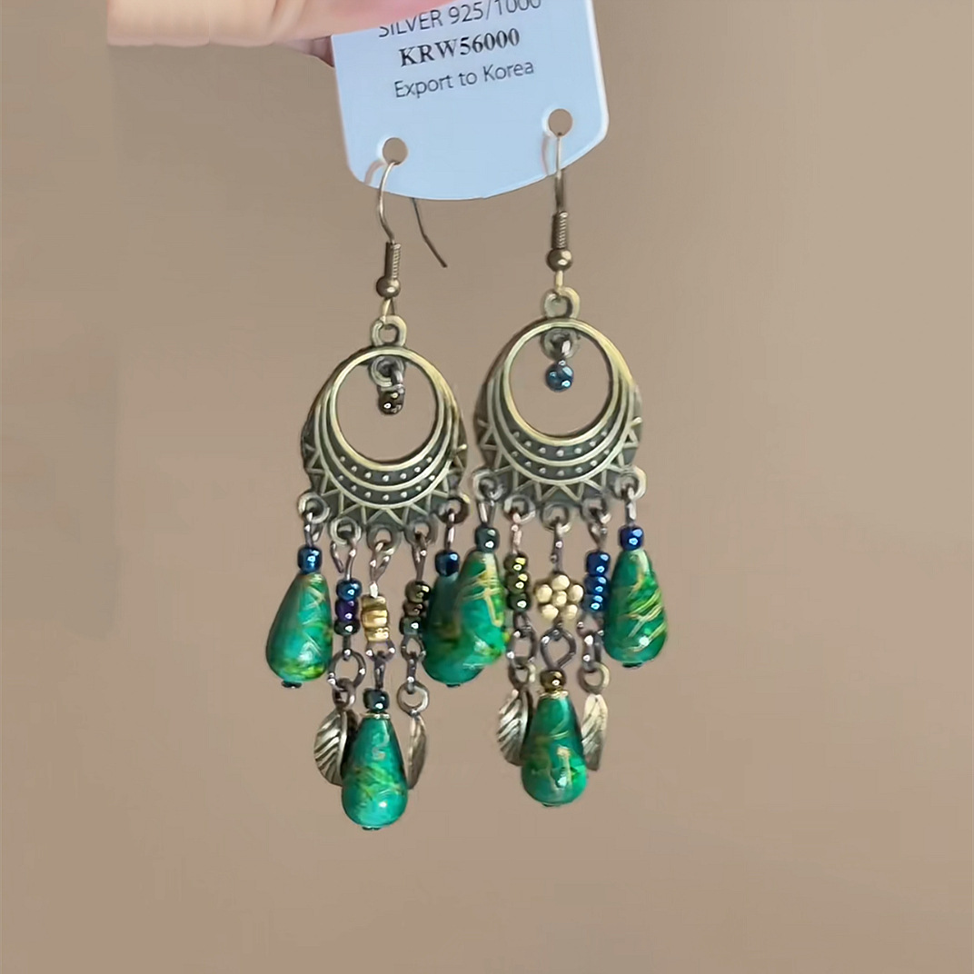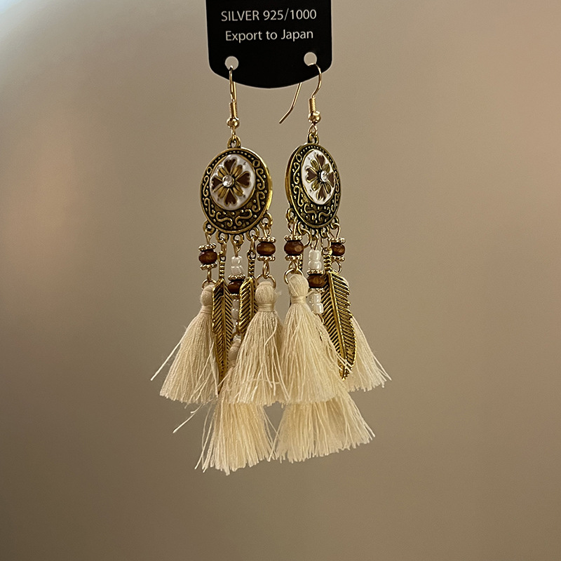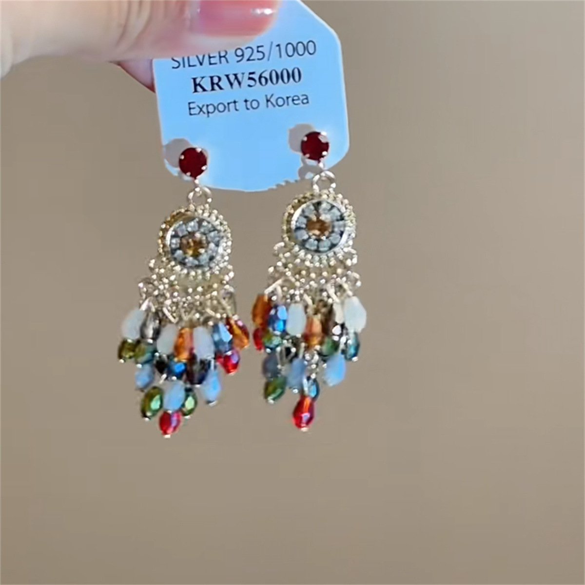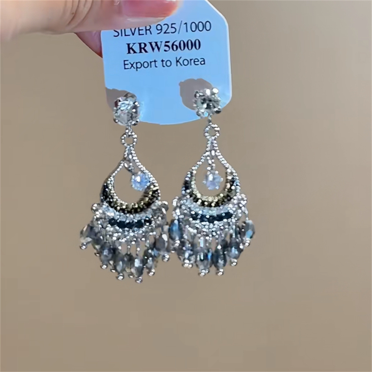 Exotic Goddess Long Crystal Tassel Retro Earrings Bohemian Ethnic Style High-End Earrings
