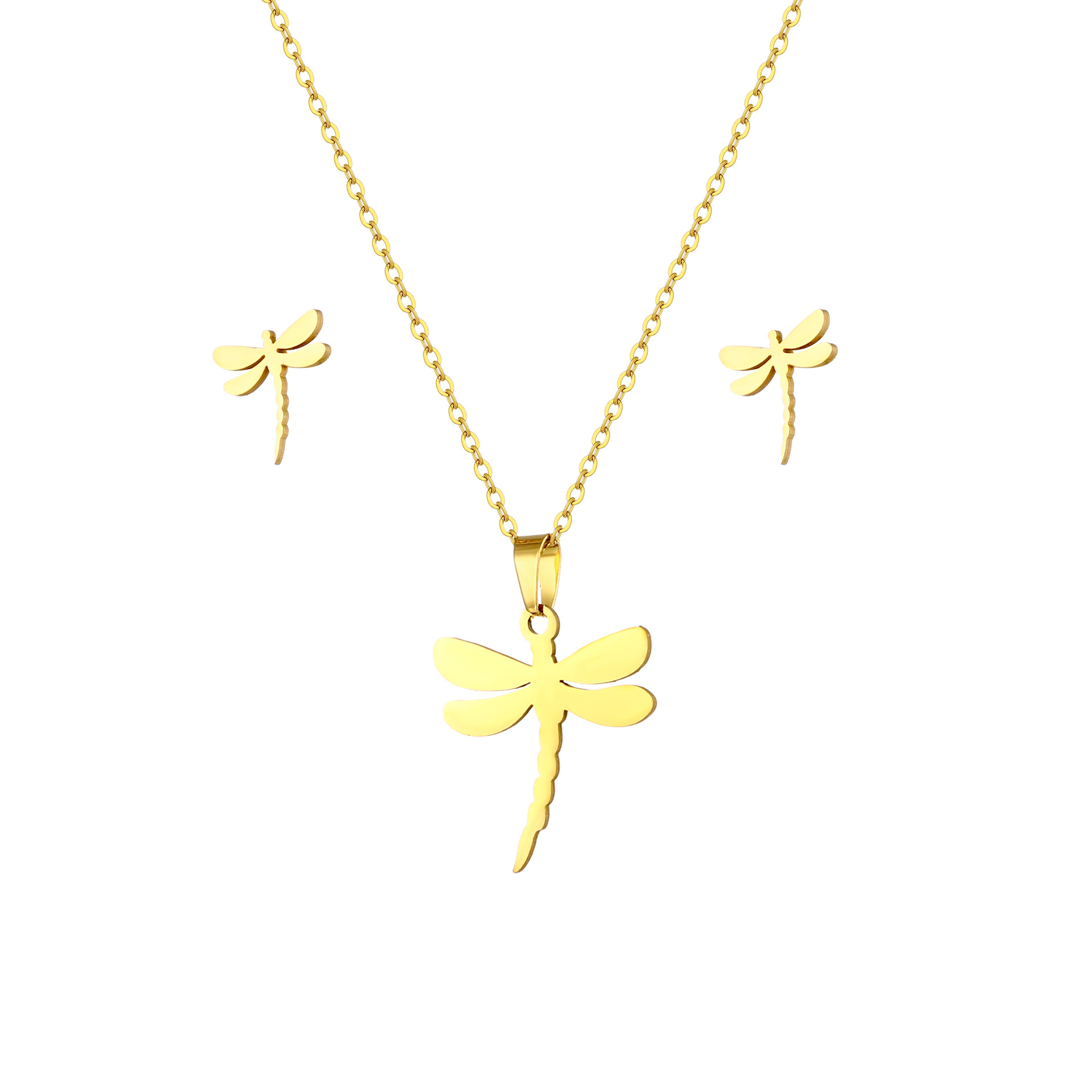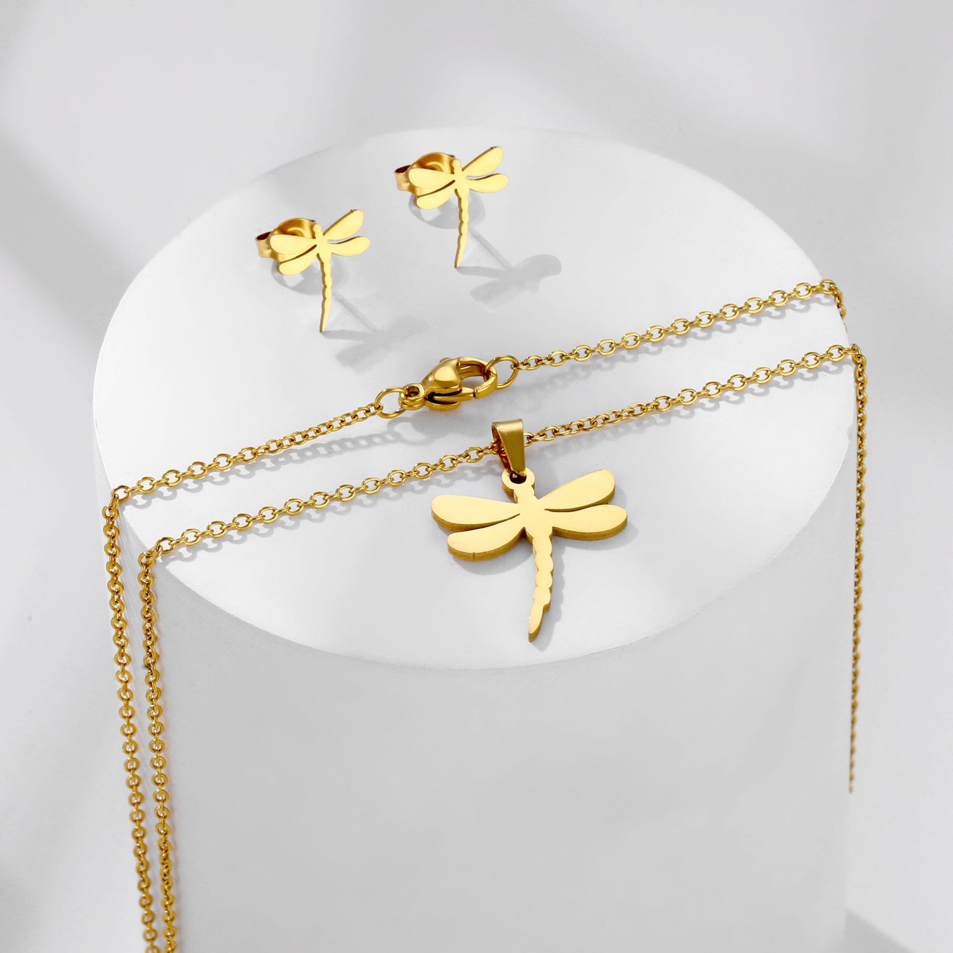 Cross-Border Creative Jewelry Stainless Steel Dragonfly Necklace Earrings Set Animal Geometric Necklace Wholesale