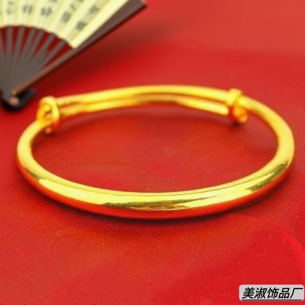 2024 New Vietnamese Sand Gold Bracelets for Men and Women, Non-Fading Wide Classic Ancient Plain Ring Color Adjustable Bracelets
