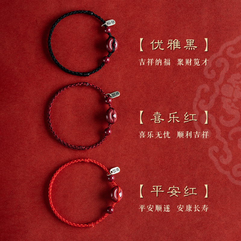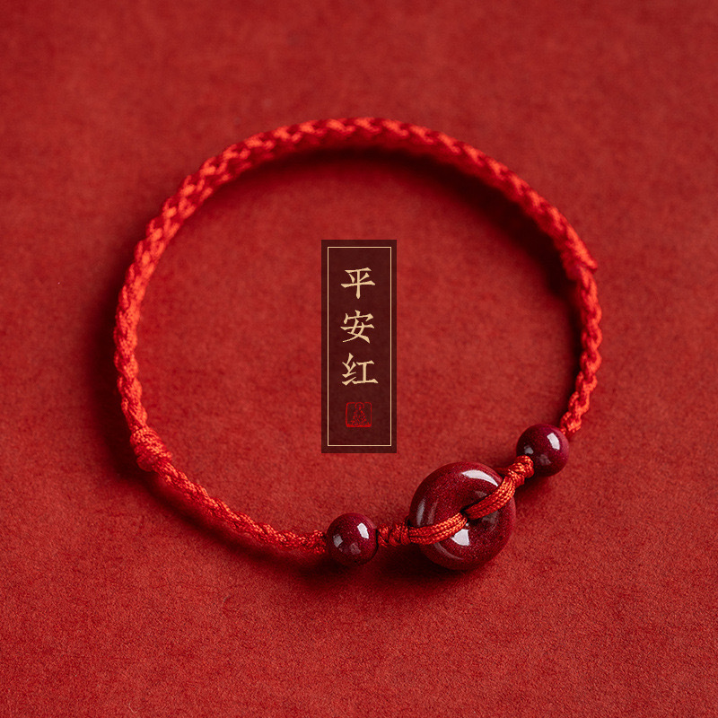 Cinnabar Peace Buckle Fortune Bracelet for Women, Red String Handmade Bracelet for Men Born in the Year of the Rabbit, Attracting Wealth and Fortune, Niche
