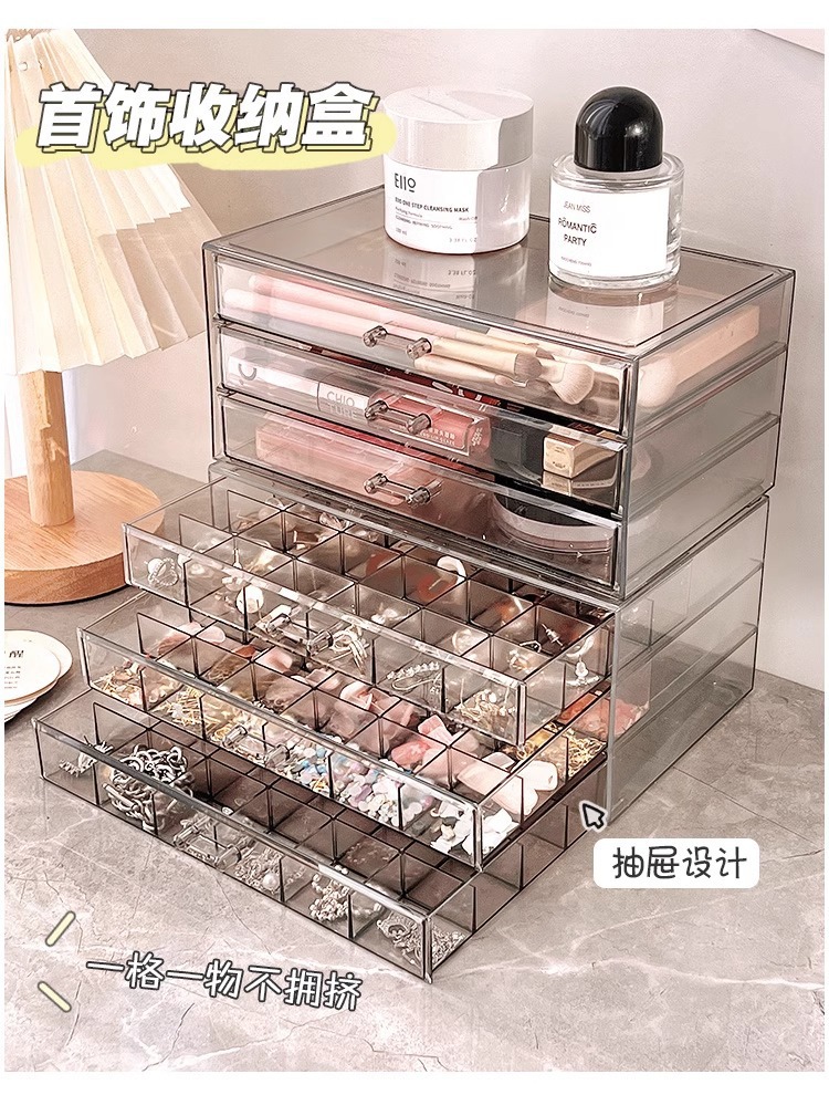 Light luxury drawer model-transparent gray [72 grids] three layers/large capacity