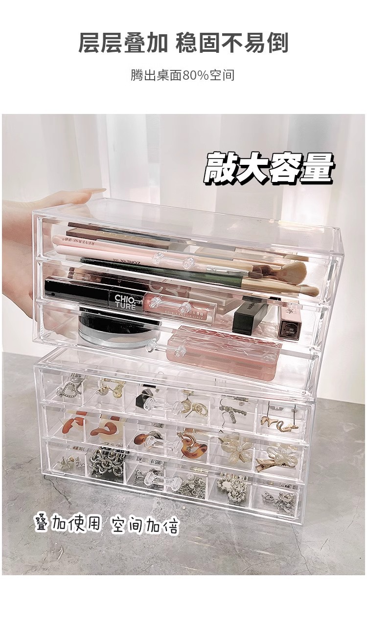 Color: Light luxury drawer model-transparent color [72 grids] three layers/large capacity