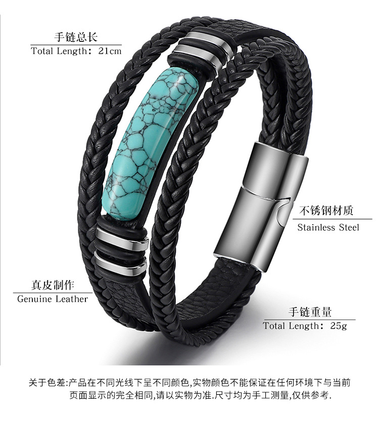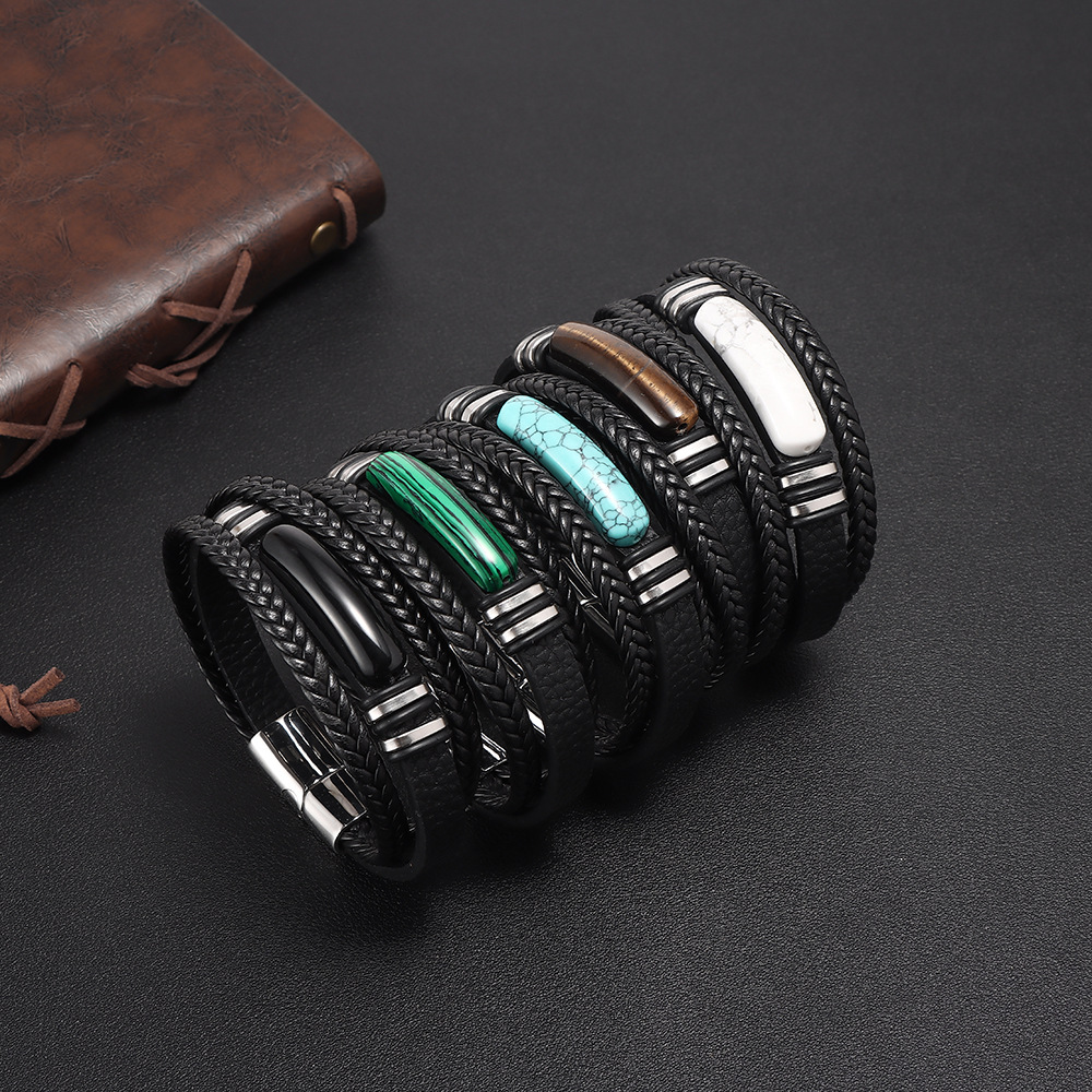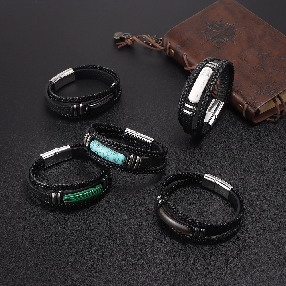 Amazon's Popular Multi-Layered Genuine Leather Bracelet Cross-Border Special Bracelet Stainless Steel Tiger Eye Stone Bracelet Men's European and American Hot Sale