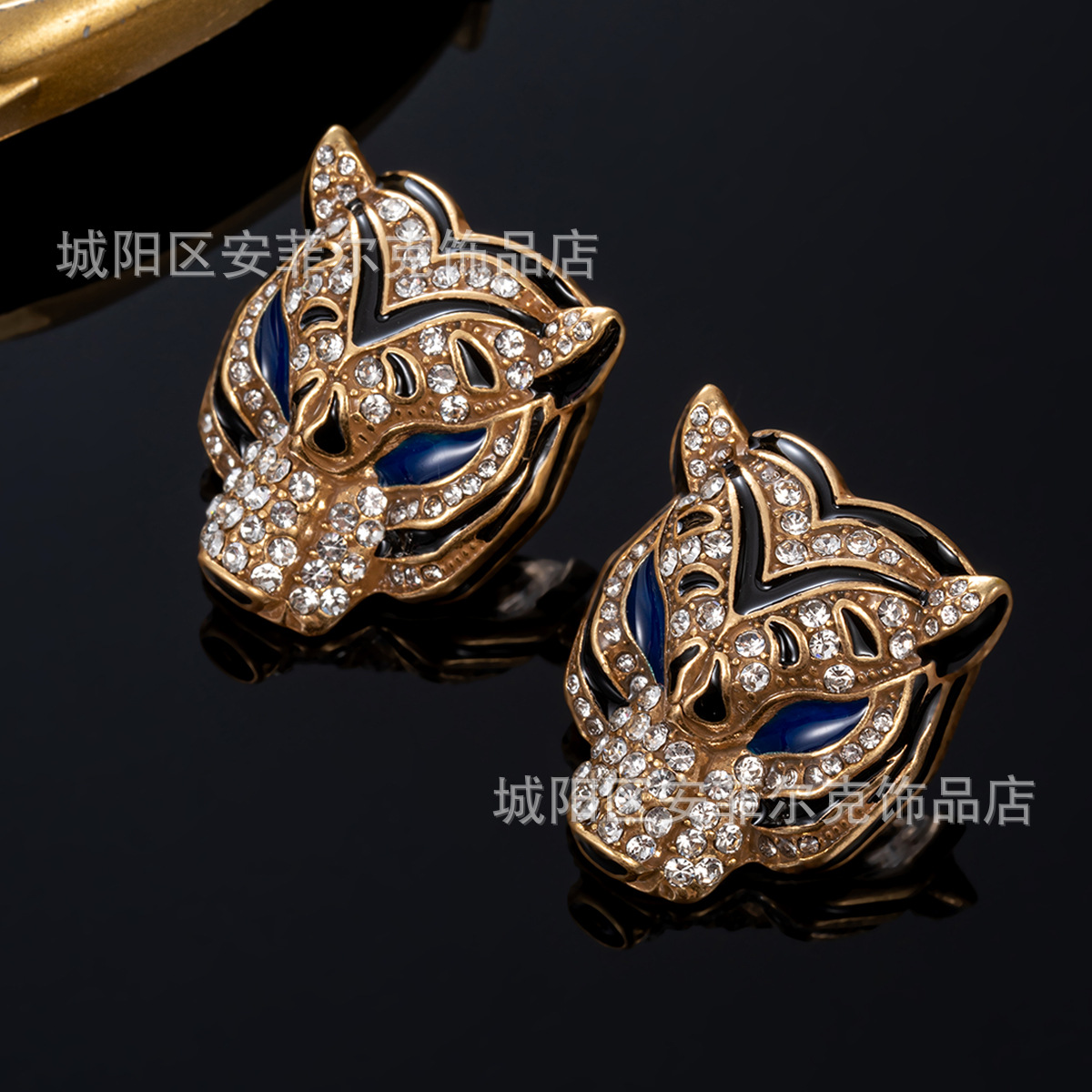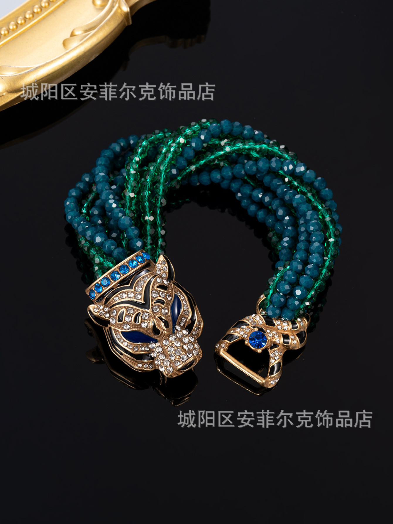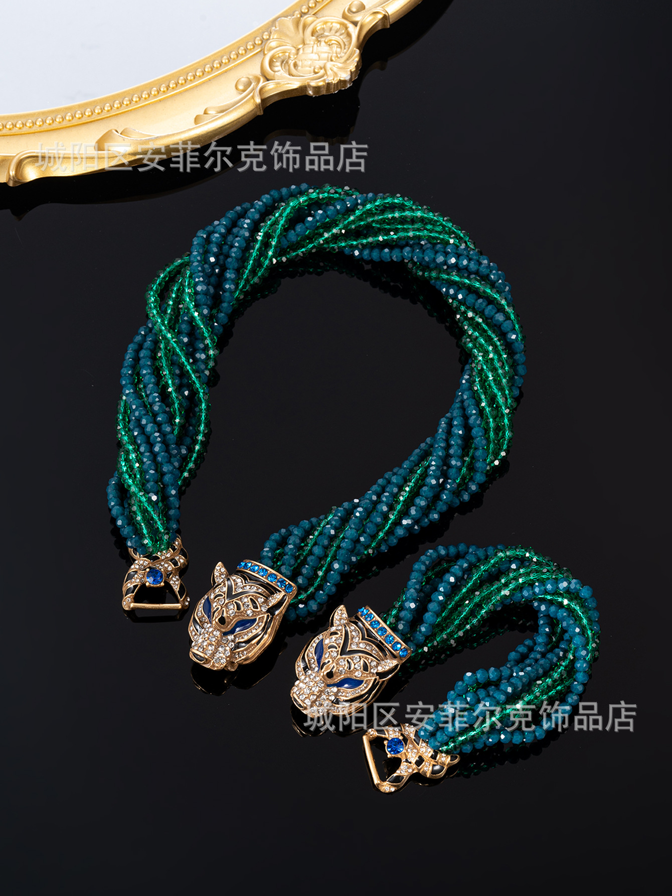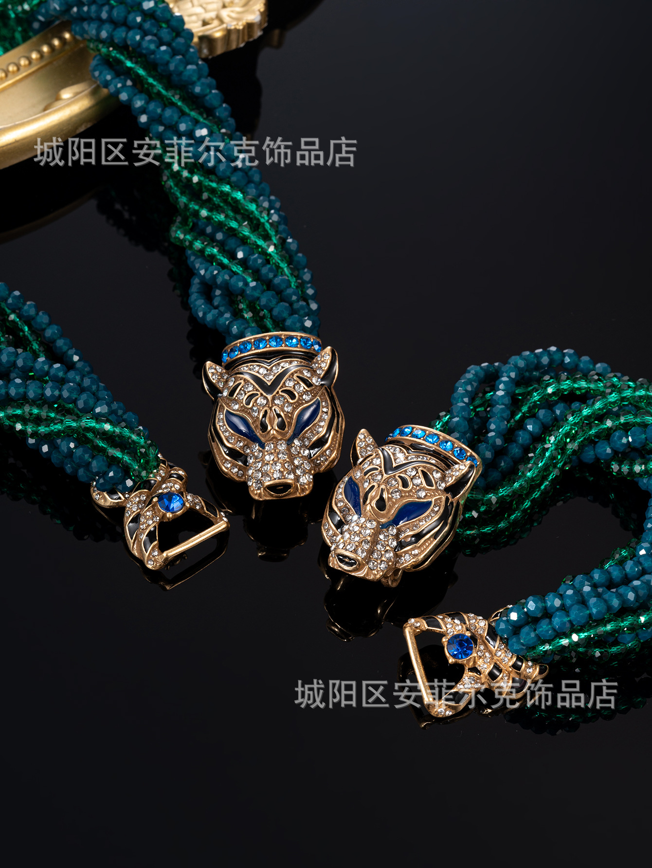 Qingdao Vintage European and American Retro Leopard Head Multi-Layer Beaded Necklace Bracelet Earrings Heavy Craftsmanship Elegant Set