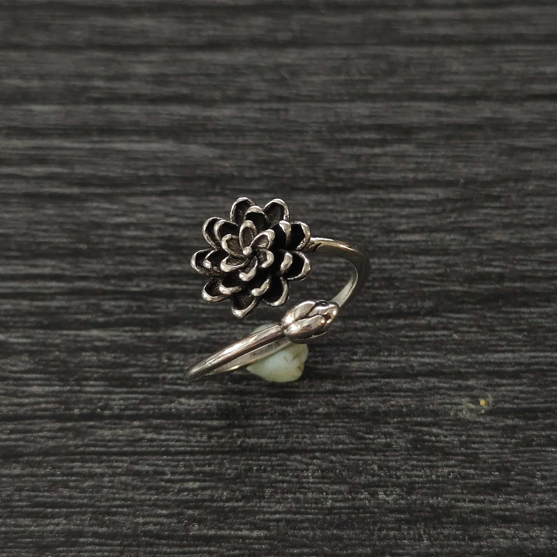 New Imitation Plain Silver Chinese Style Pure White Lotus Adjustable Open Ring Elegant Women's Index Finger Ring