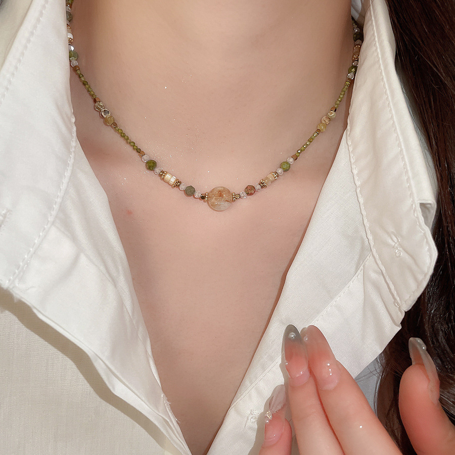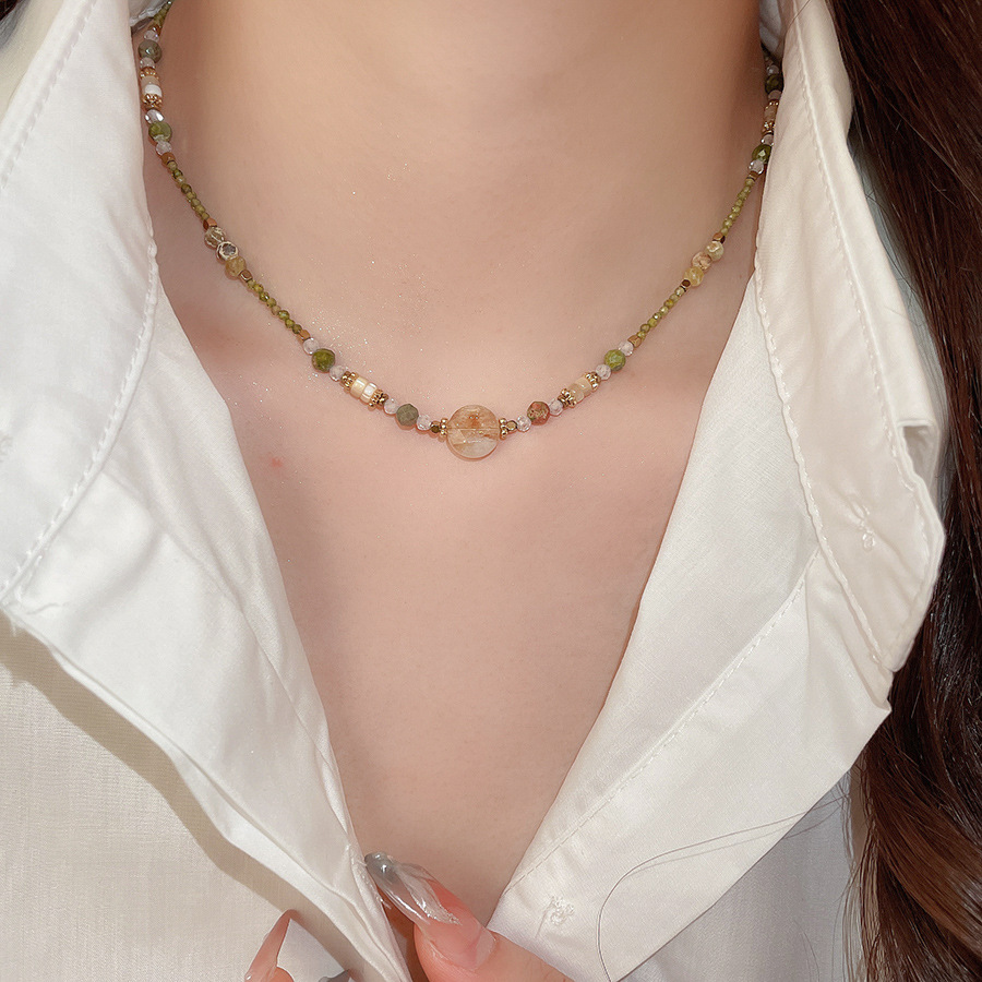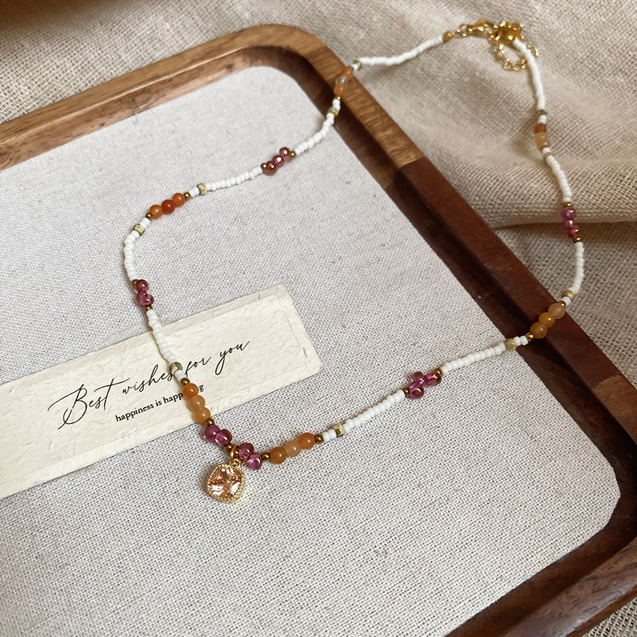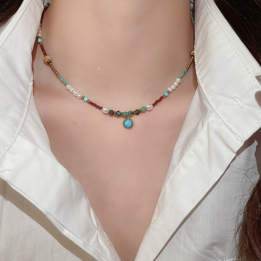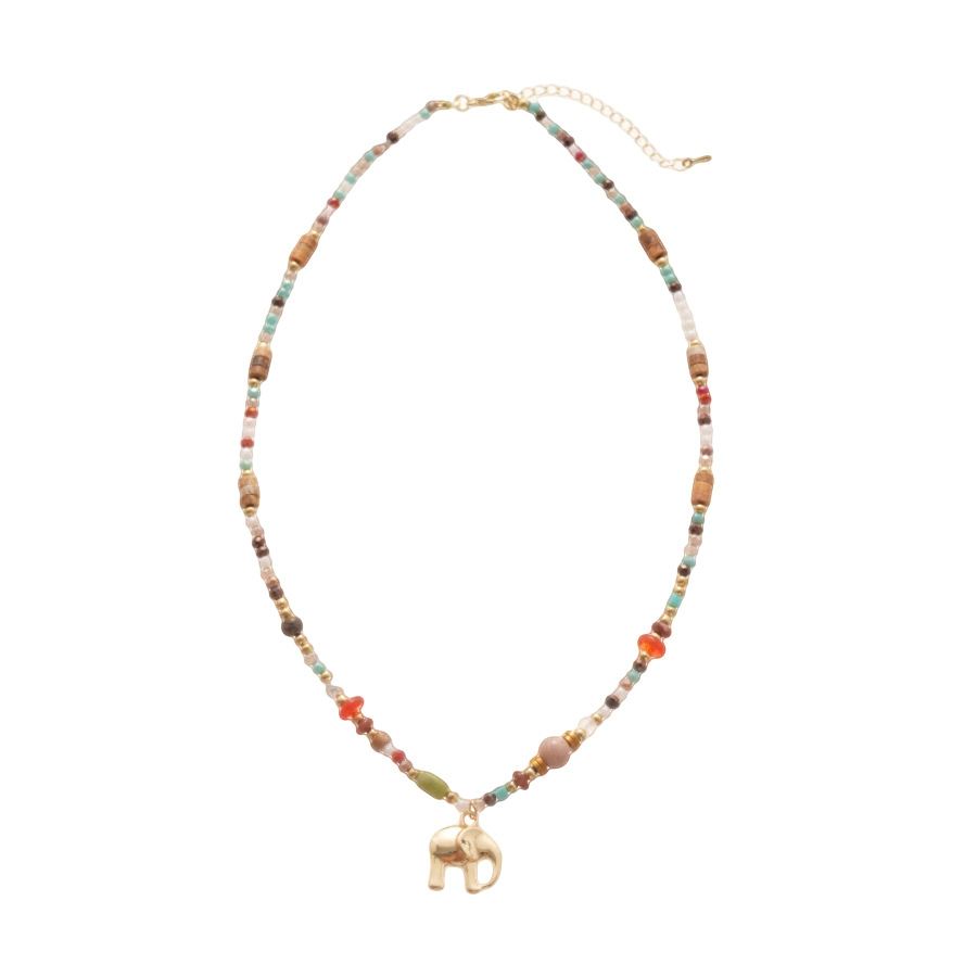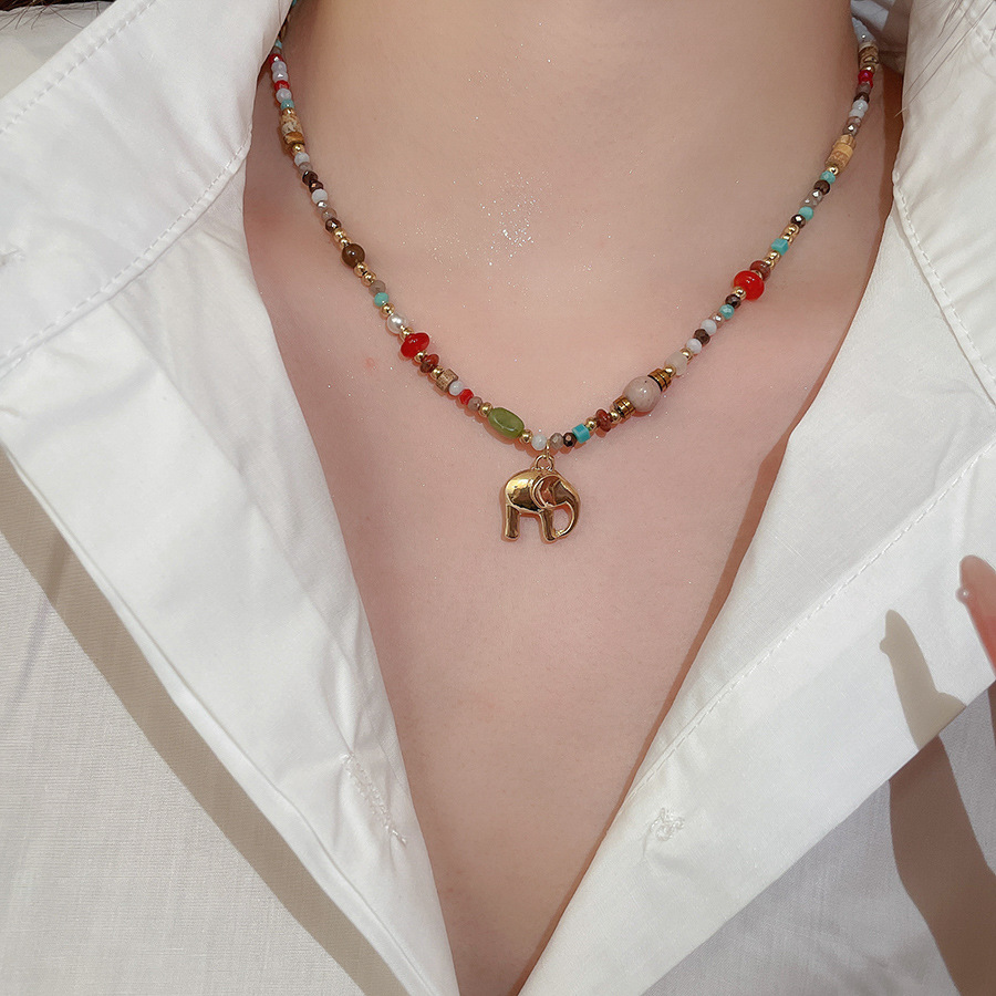 Retro Ethnic Style Baby Elephant Picture Stone Glass Geometric Beaded Necklace Personalized Simple Clavicle Chain Niche Necklace