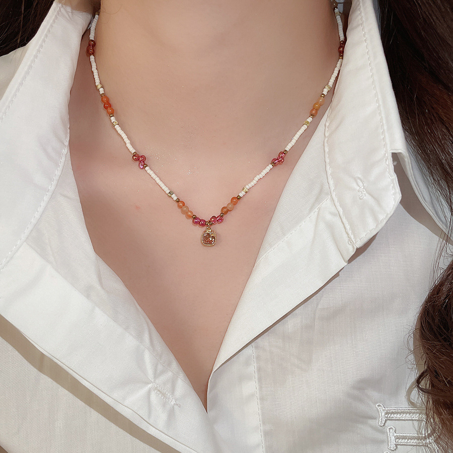 Color: 22#Necklace-gold-pink-white (real gold plating)