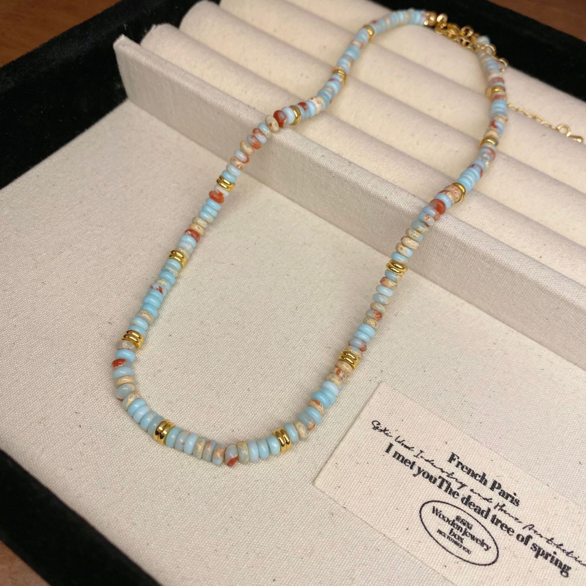 Color: 16#Necklace-gold-blue-white (real gold plating)