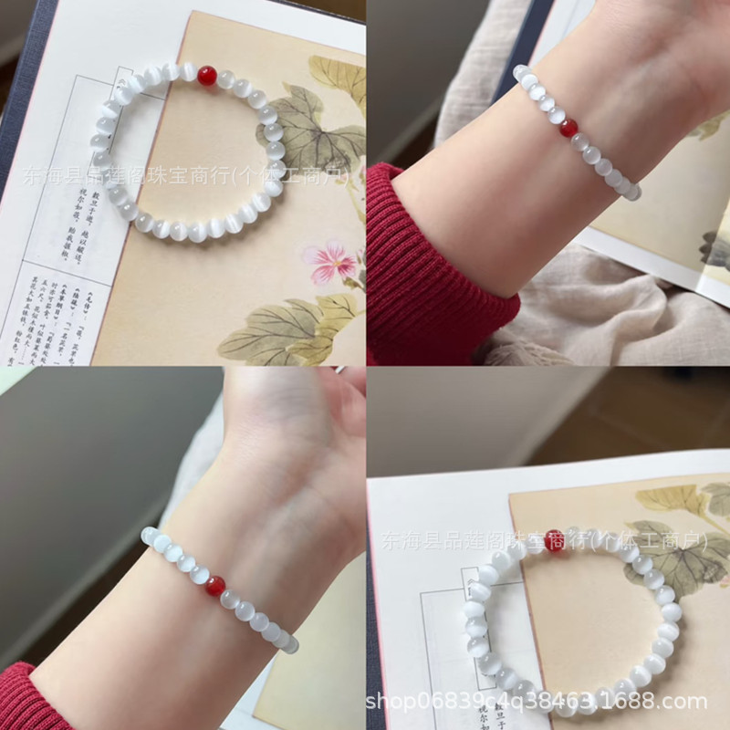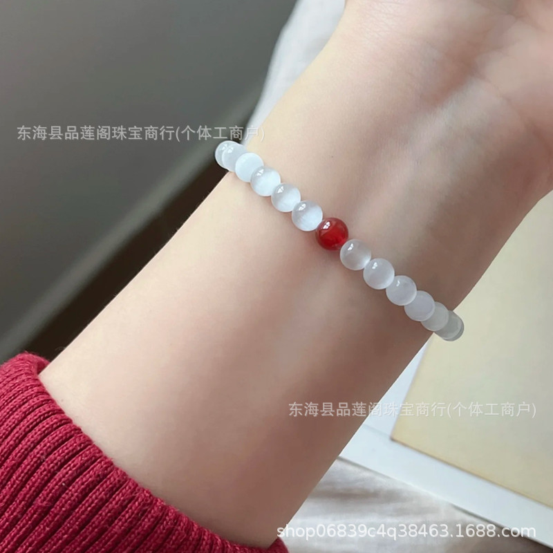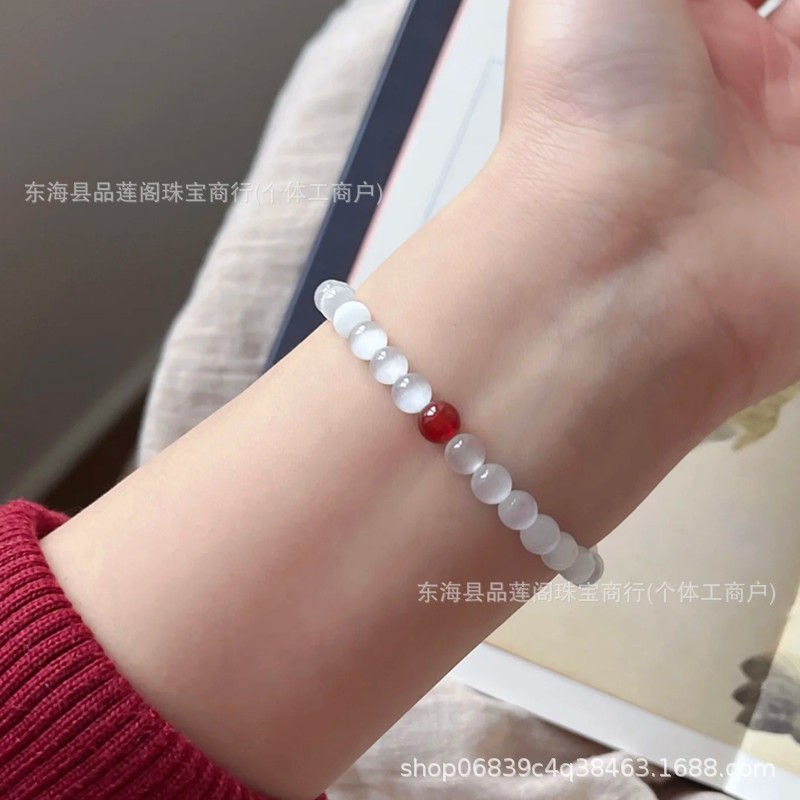 White Cat's Eye Stone Red Agate Bracelet for Women, Light Luxury, Small Clear Obsidian Versatile Bracelet, New Chinese Style Versatile Jewelry