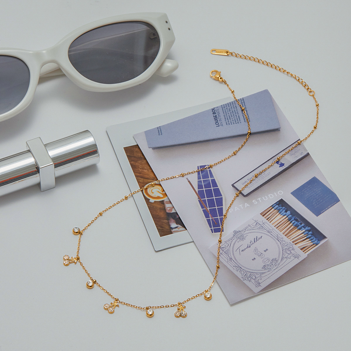 Quiet and Elegant Design Classic Style 18K Gold Stainless Steel with White Diamond Cherry Pendant Necklace Stainless Steel Jewelry Wholesale