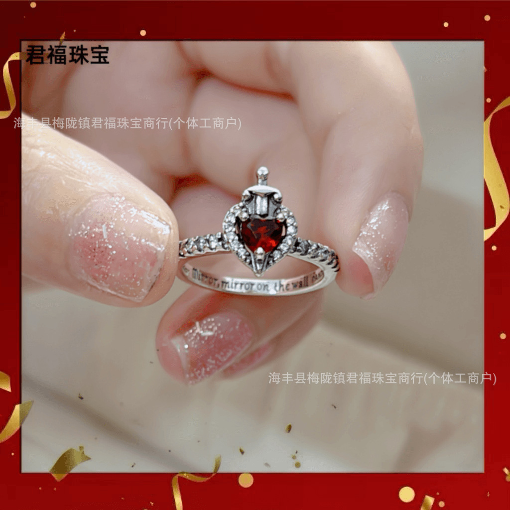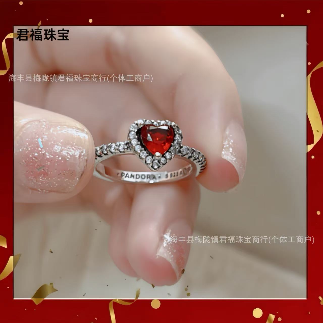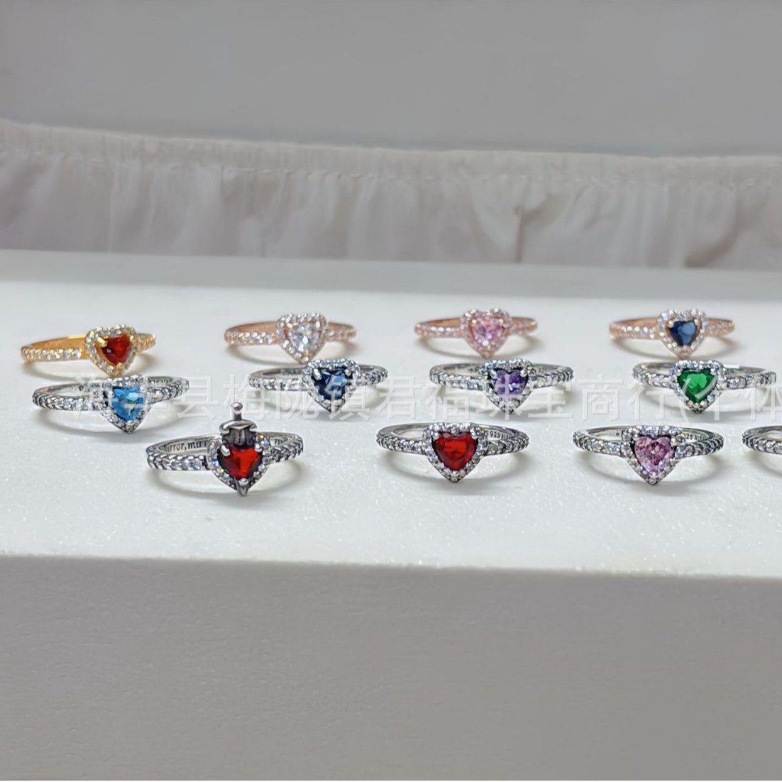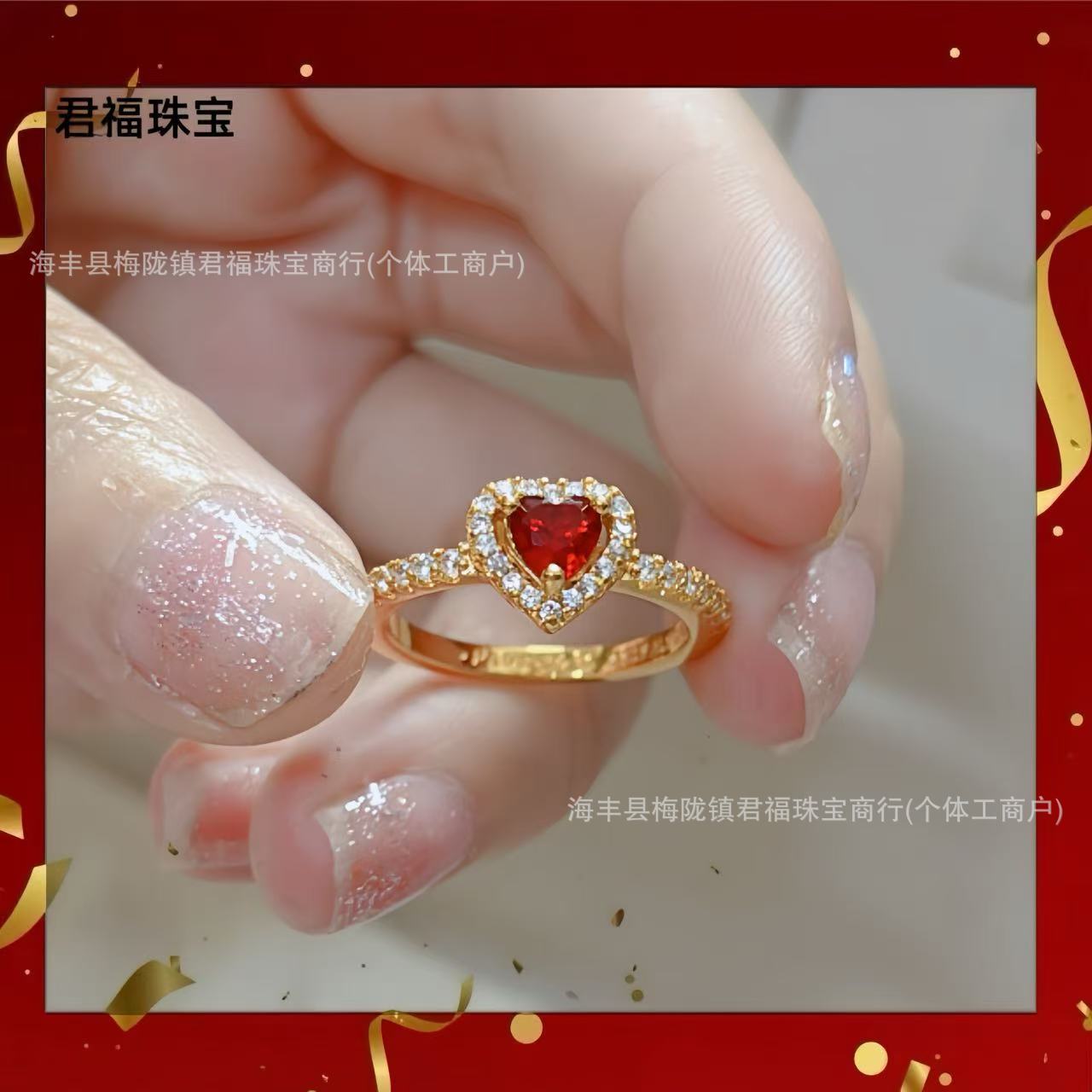 Panjia Dora White Copper Silver-Plated Noble Heart-Shaped Series Ruby ​​Love Ring Colorful Pair of Rings Cross-Border Hot Style