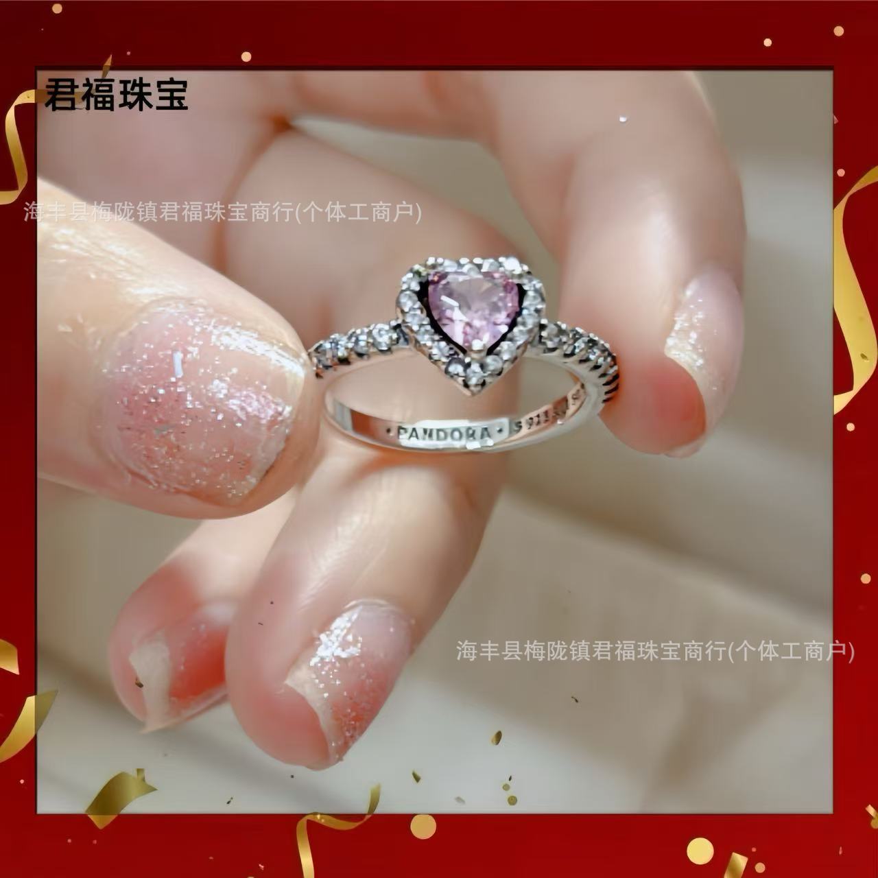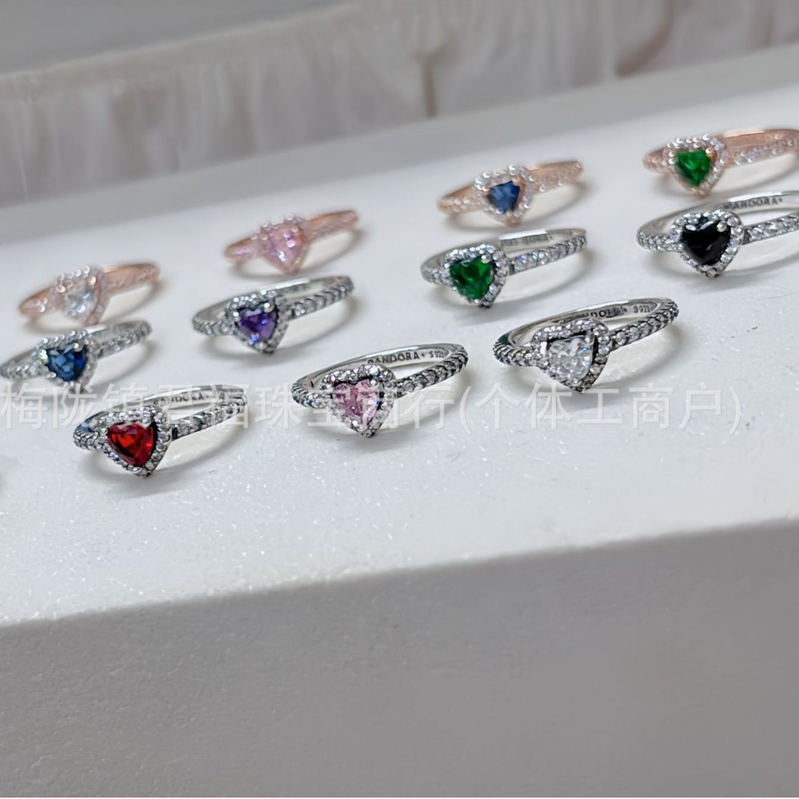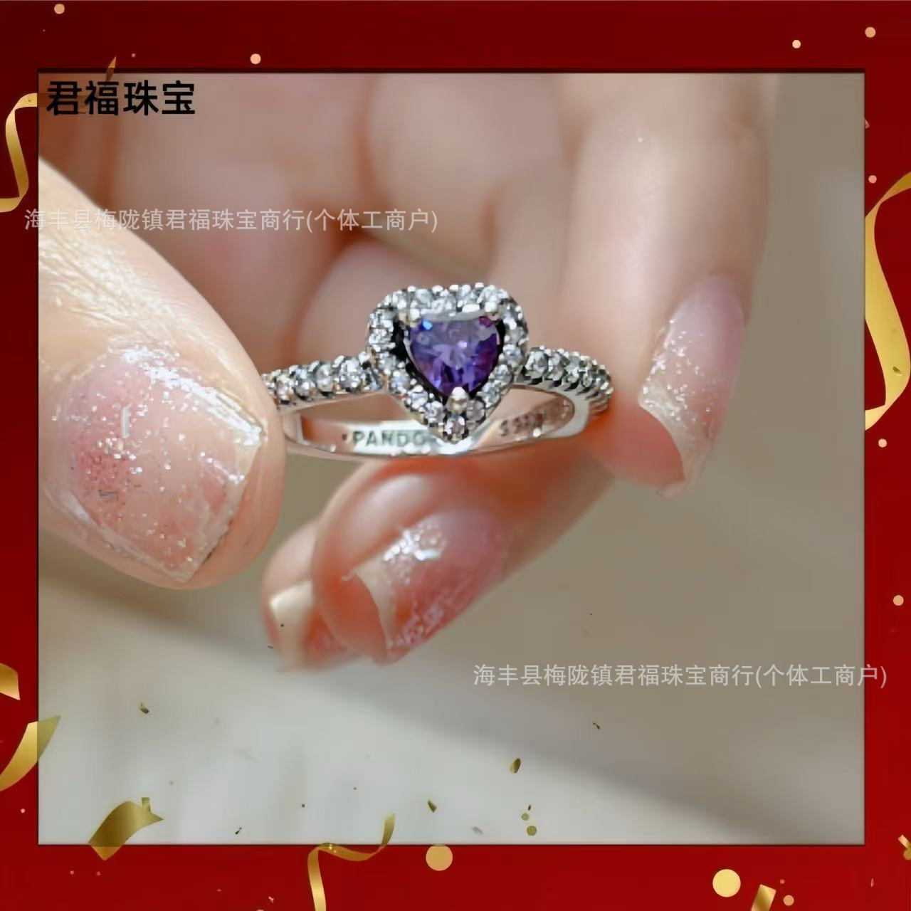 Panjia Dora White Copper Silver-Plated Noble Heart-Shaped Series Ruby ​​Love Ring Colorful Pair of Rings Cross-Border Hot Style