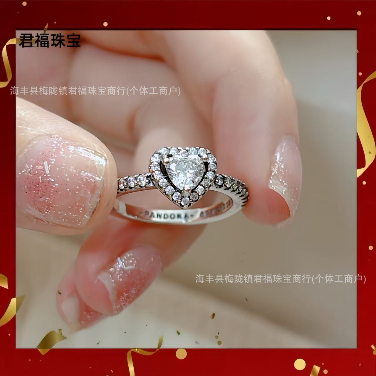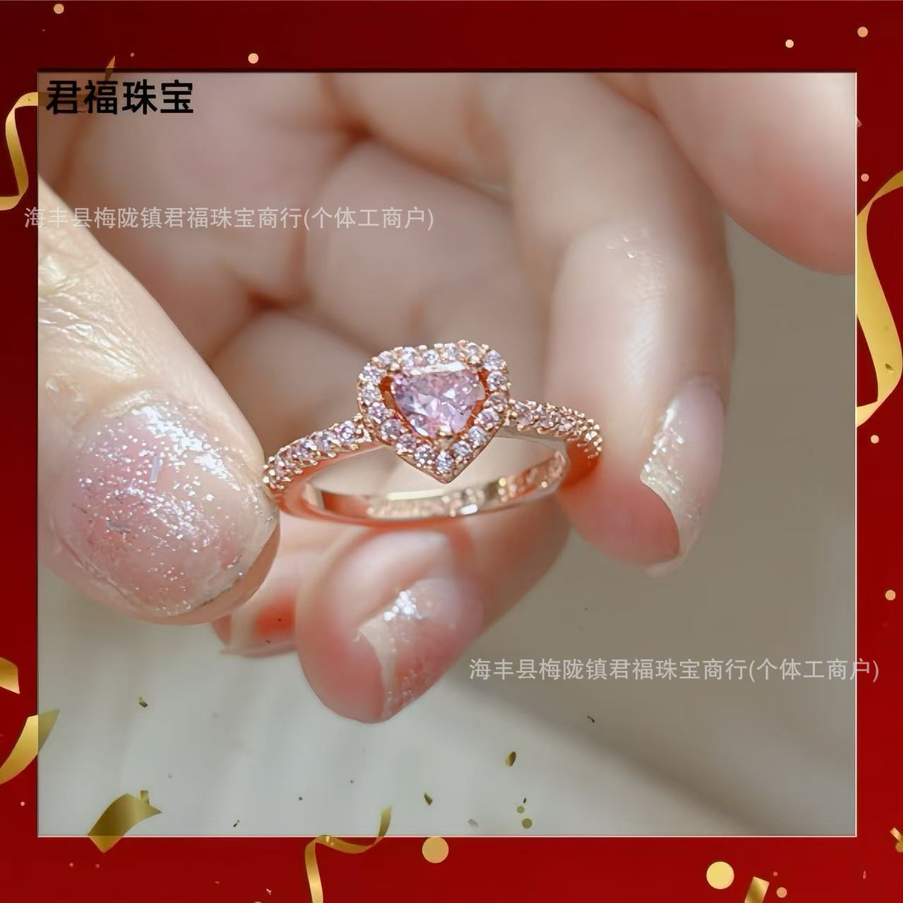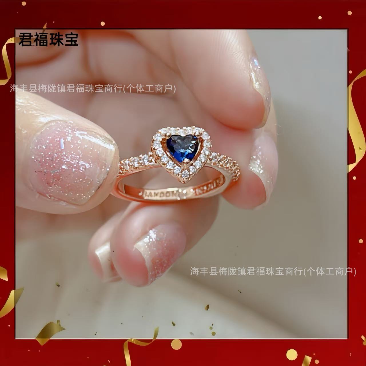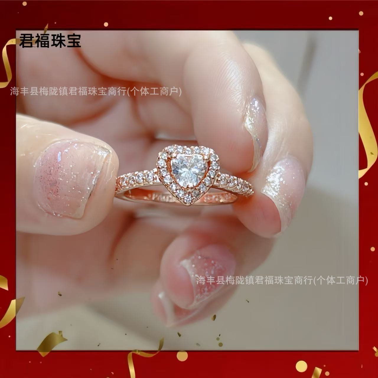 Panjia Dora White Copper Silver-Plated Noble Heart-Shaped Series Ruby ​​Love Ring Colorful Pair of Rings Cross-Border Hot Style