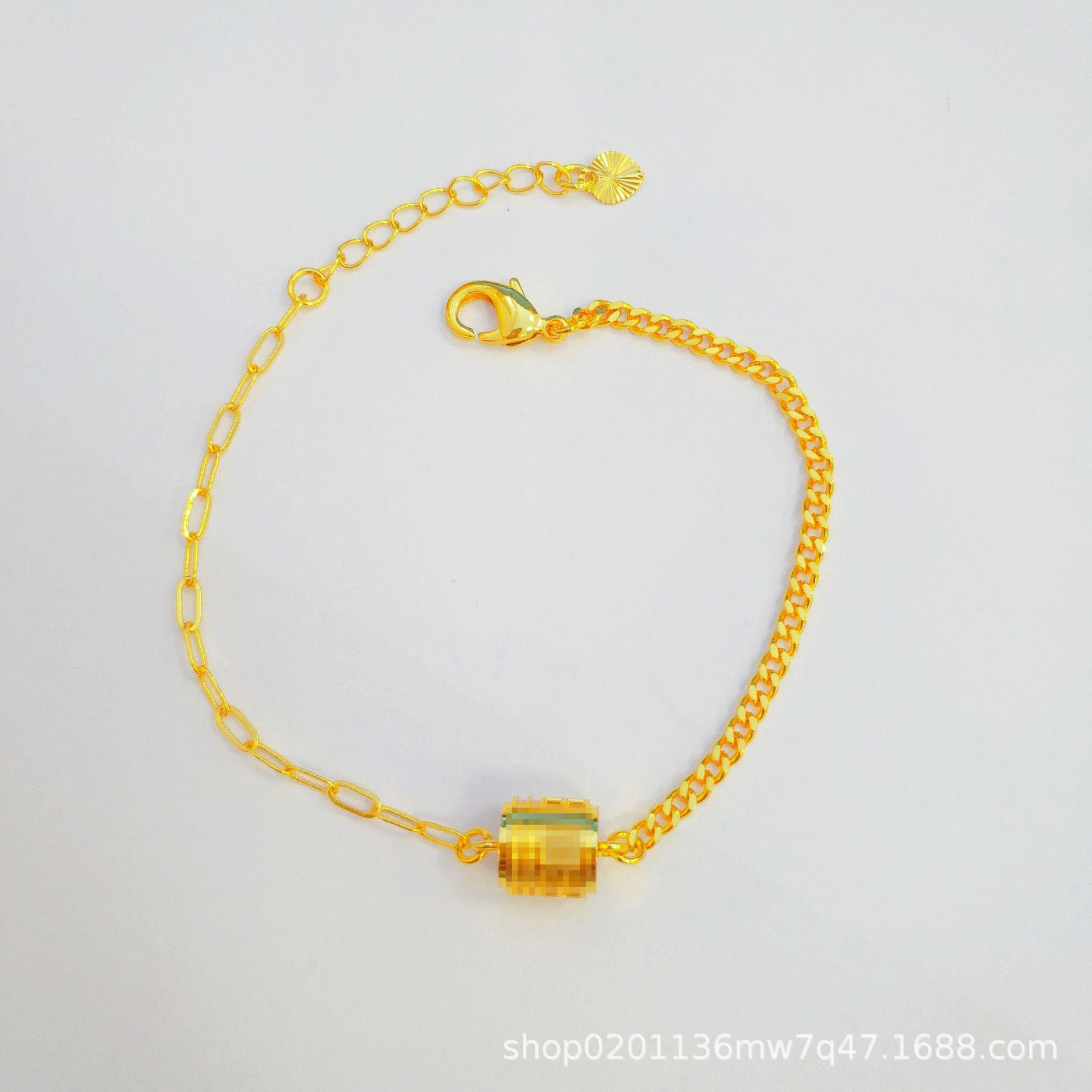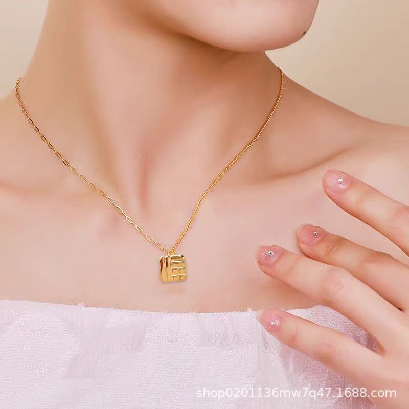 Zhou's Same Style Chuanfu Necklace Bracelet, Golden National Trend Style Blessing Pendant Clavicle Chain Women's Bracelet Set