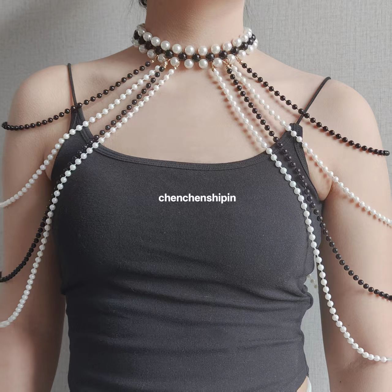 European and American Cross-Border Sexy Hot Girl Body Chain Waist Chain Women's Fashion Show Imitation Pearl Shoulder Chain Bra Decorative Chain Clothing Chain