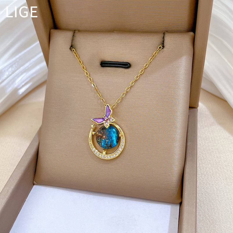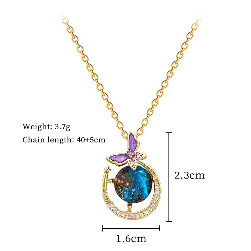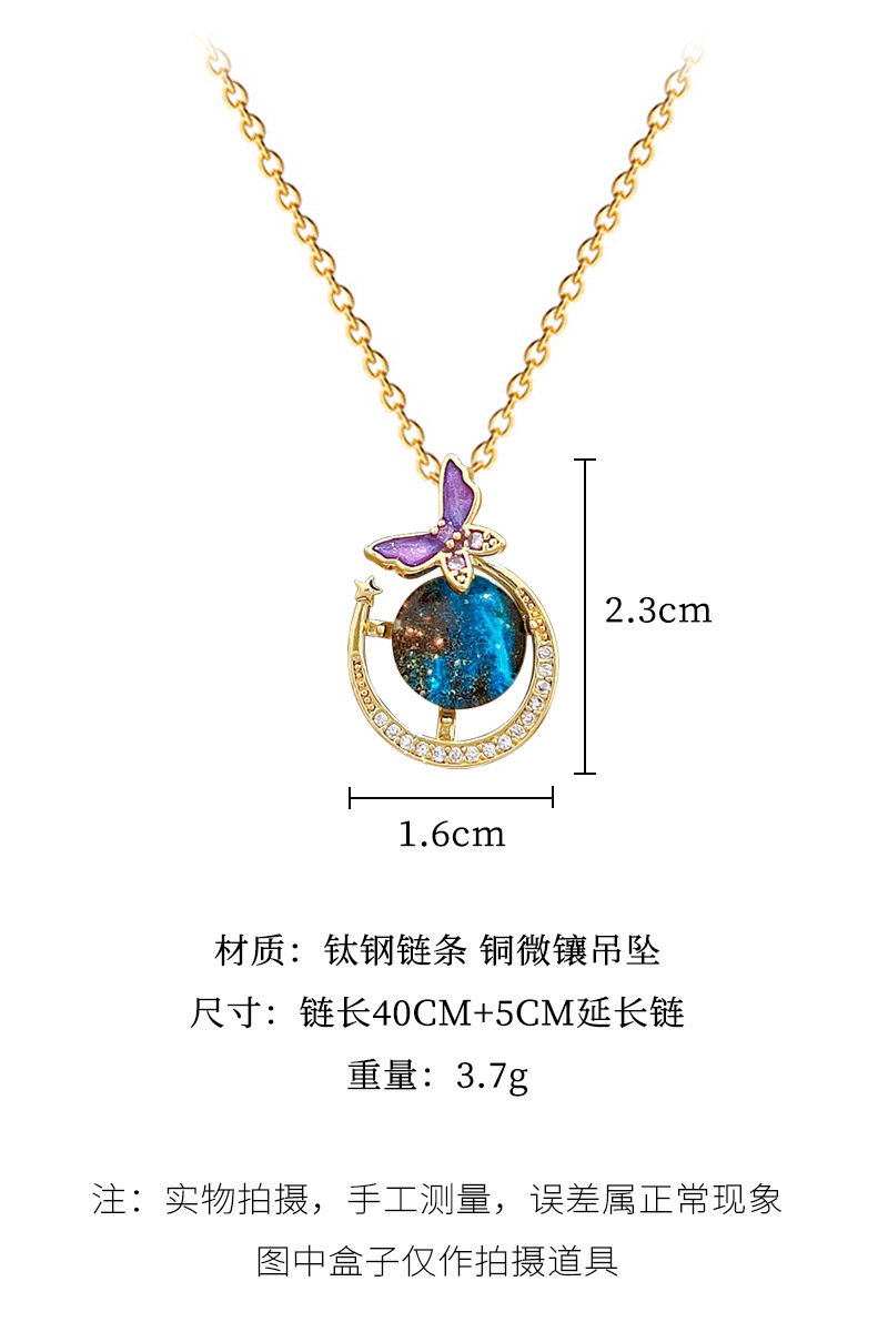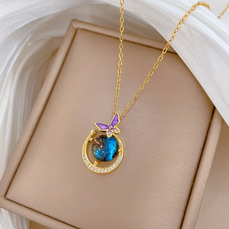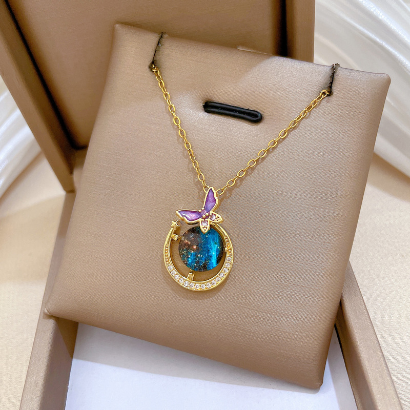 [Titanium Steel] Starry Sky Colorful Butterfly Light Luxury Luxurious Full Diamond Necklace Women's Easiest for Match Clavicle Chain Titanium Steel Chain