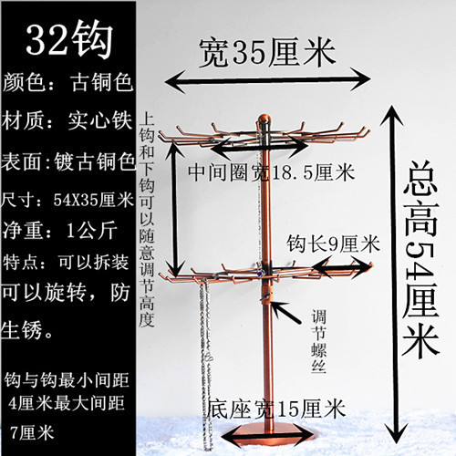 Color: 32 hooks, 4 layers, 57cm stainless steel color, adjustable
