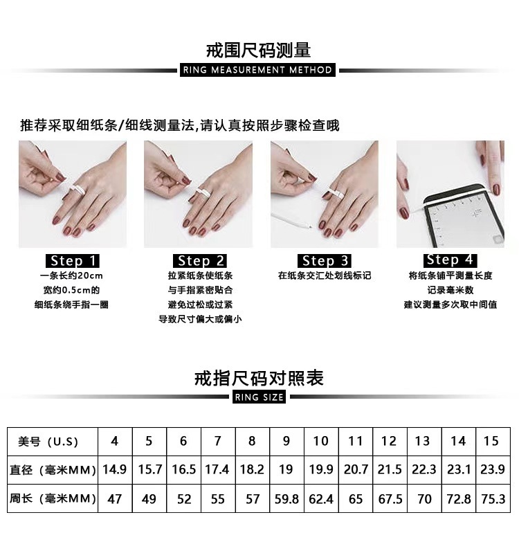 5号 内圆直径=15mm 手指一圈周长47-48mm戴是合适