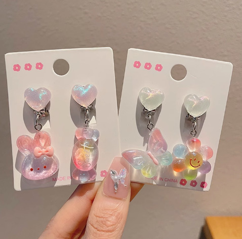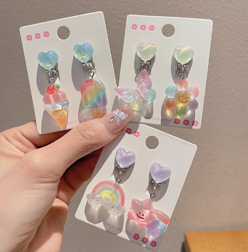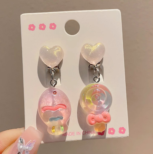 Color: 4#A pair of meat powder and fish lollipop ear clips