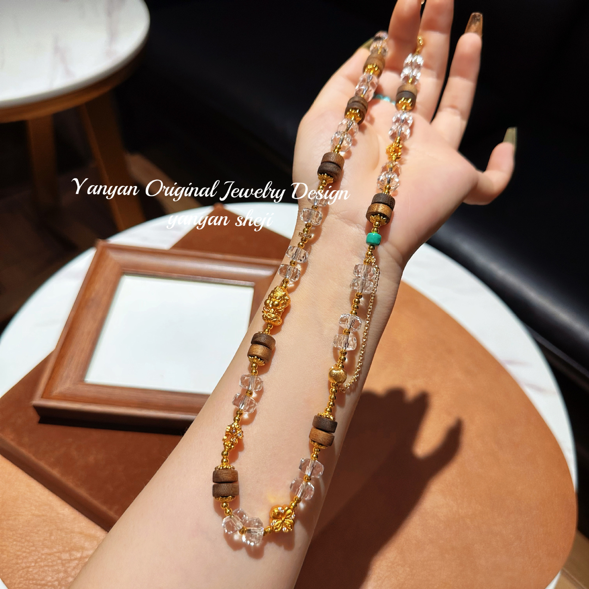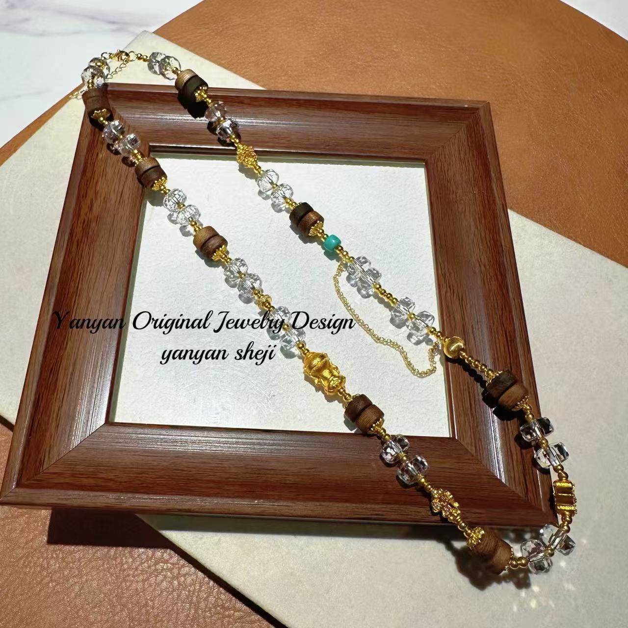 Chinese Style Fashion New Chinese Style Agarwood Mix and Match Design Necklace Ice Transparent Multi-Circle Bracelet Necklace New Antique Style Female Lock