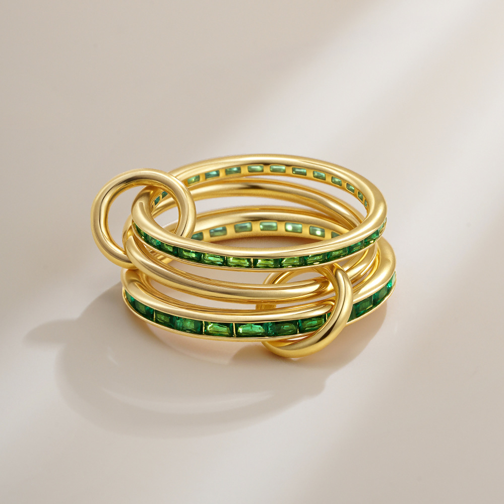 Color: Green double row zircon ring