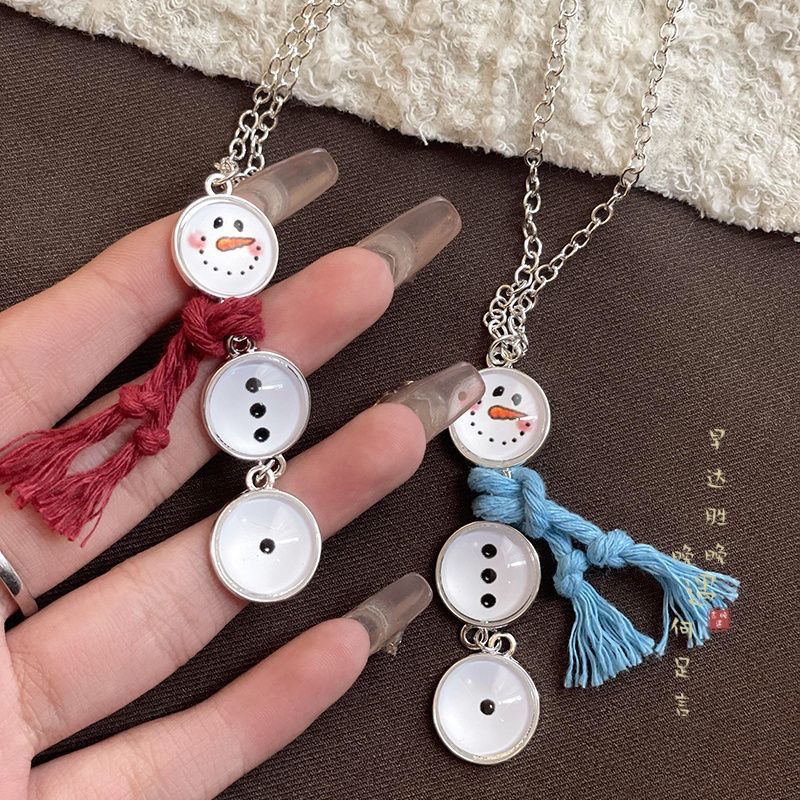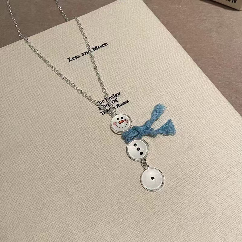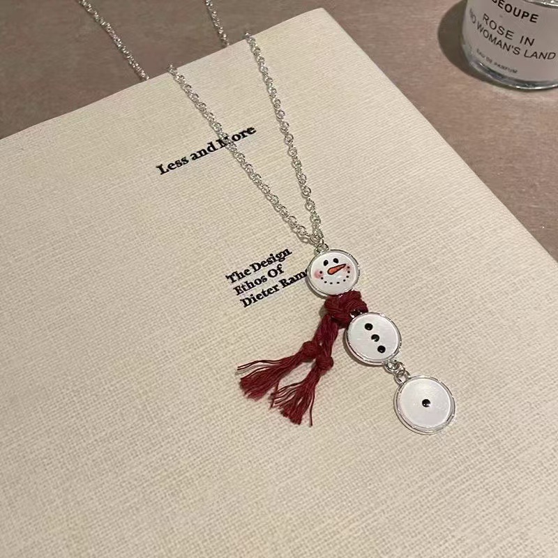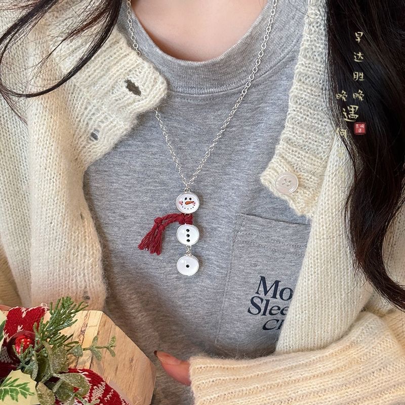Autumn and Winter Cute Little Snowman Pendant Necklace Women's Christmas Decoration Sweatshirt Chain Niche High-End Versatile Sweater Chain
