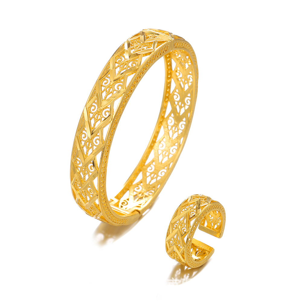 Fashion Cross-Border Saudi Dubai Luxury Women's Copper Gold-Plated Open Bracelet Vietnamese Sand Gold Hollow Bracelet Bracelet