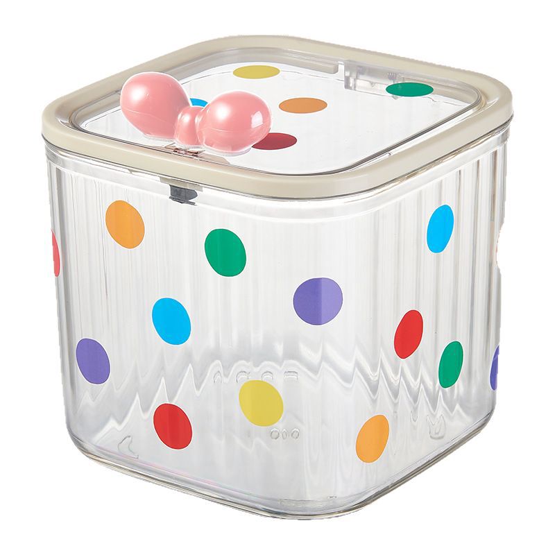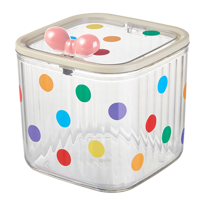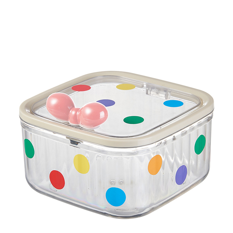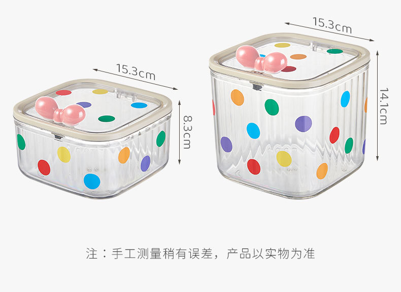 Color: Polka dot bow elastic cover storage box [beige-tall style]