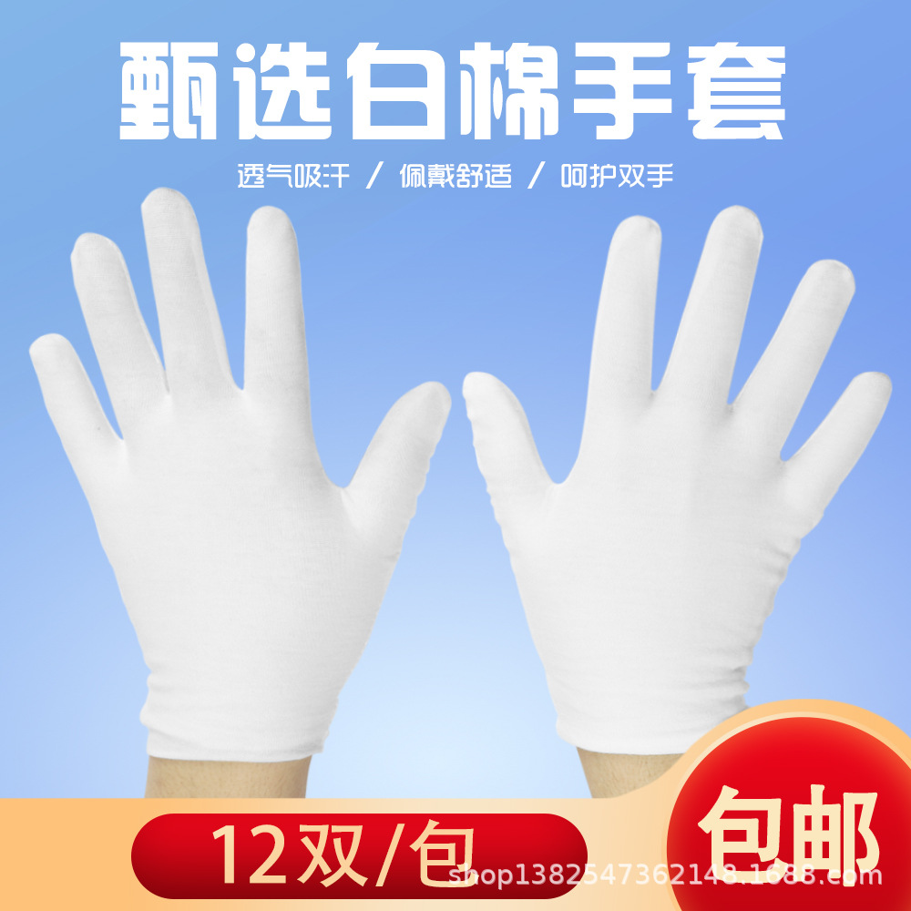 Pure Cotton White Work Gloves, Sun Protection Etiquette, Jewelry and Toys, Sweat-Absorbent and Breathable Disc String Gloves, Available for Wholesale and Invoicing