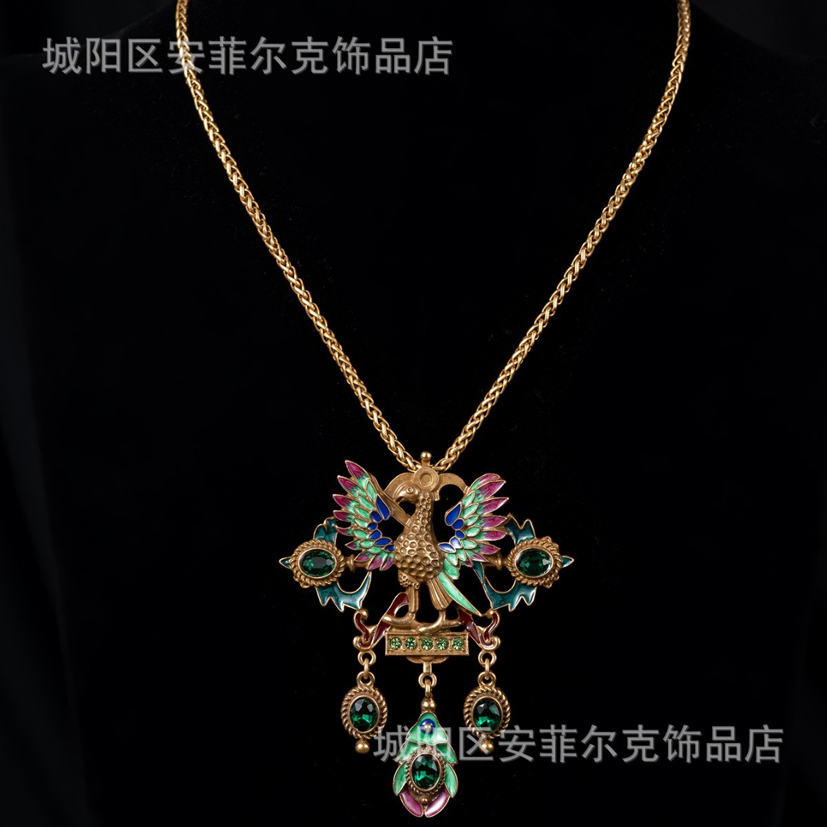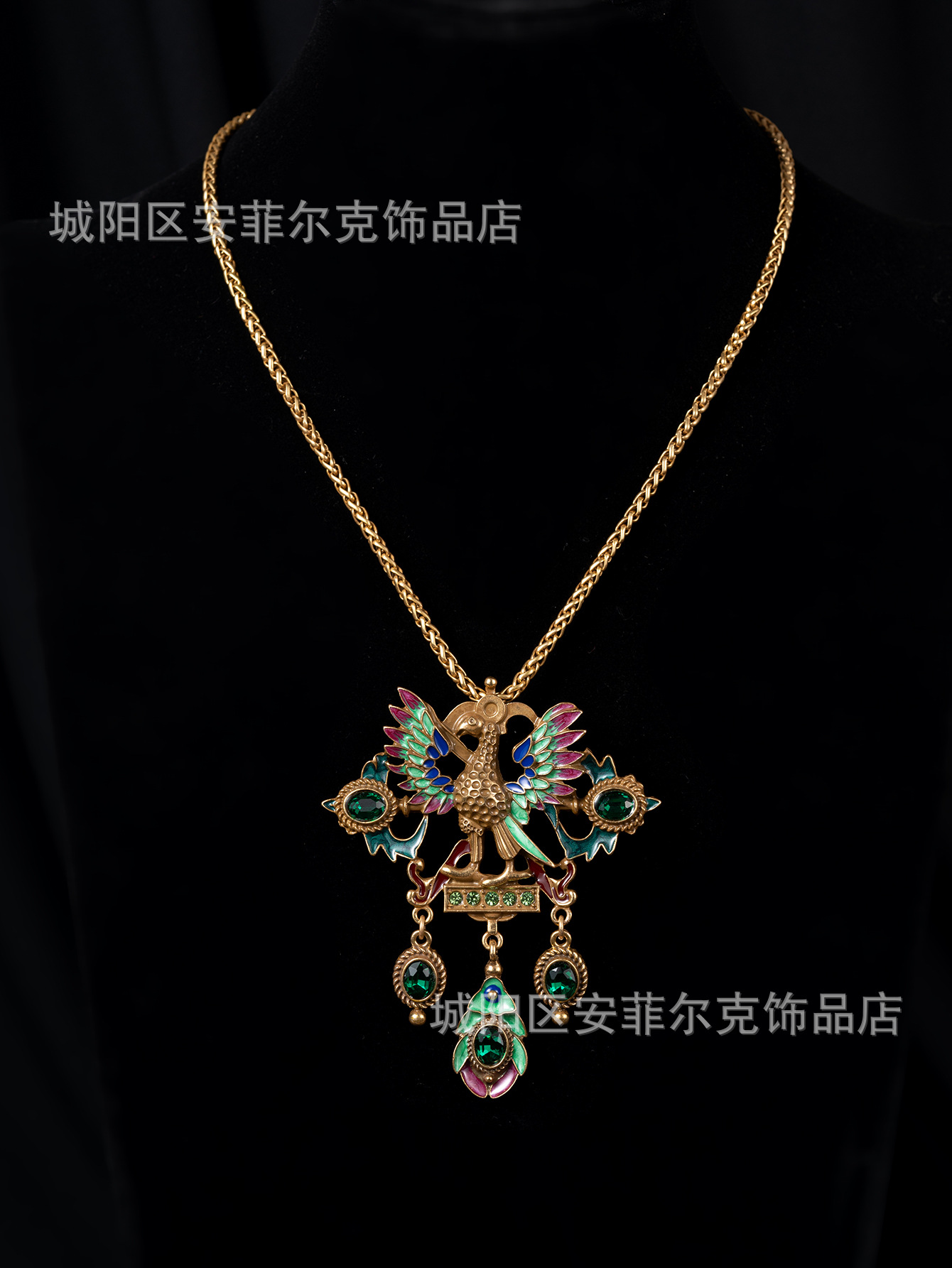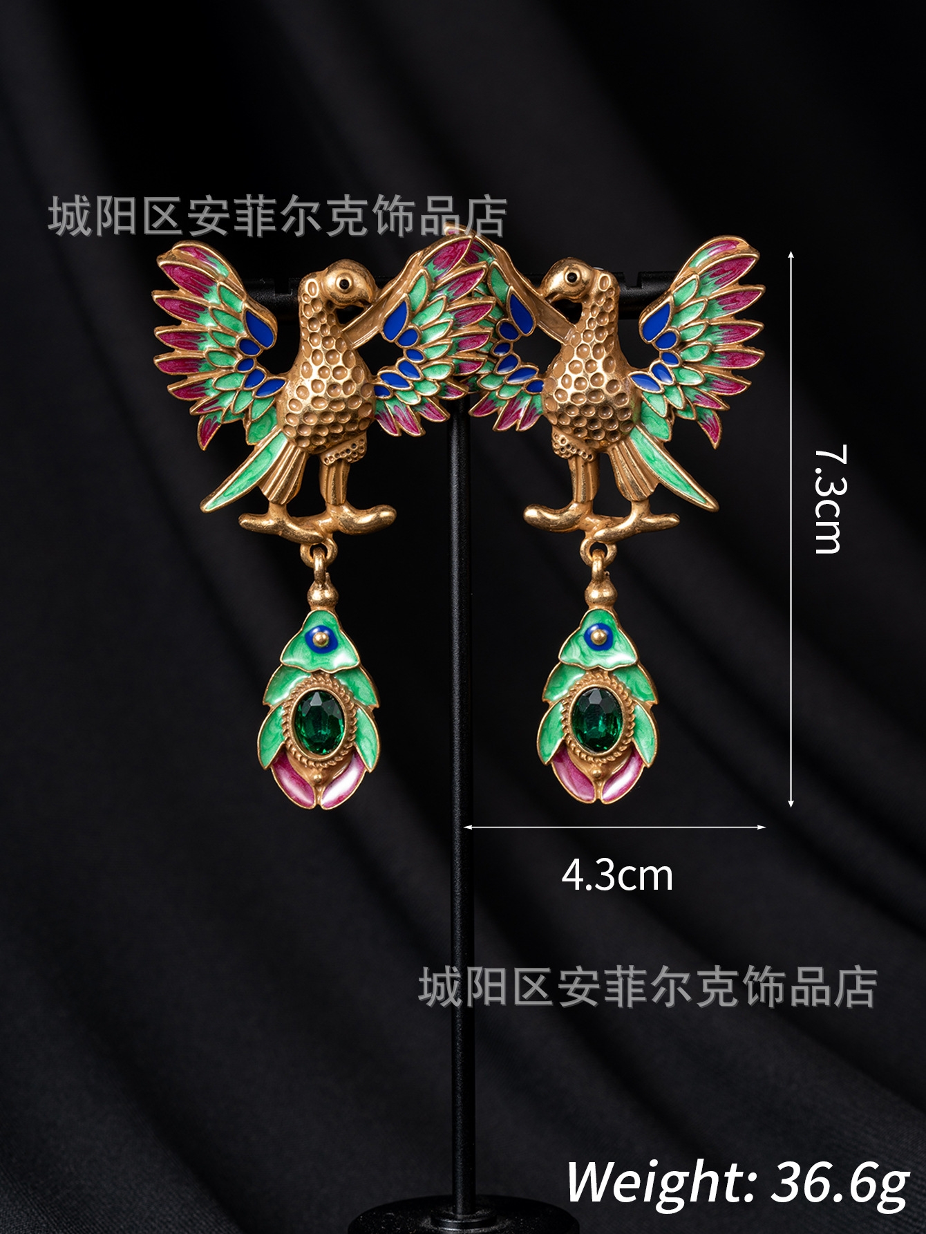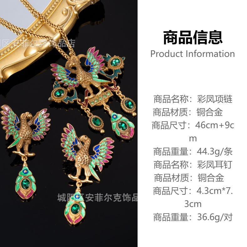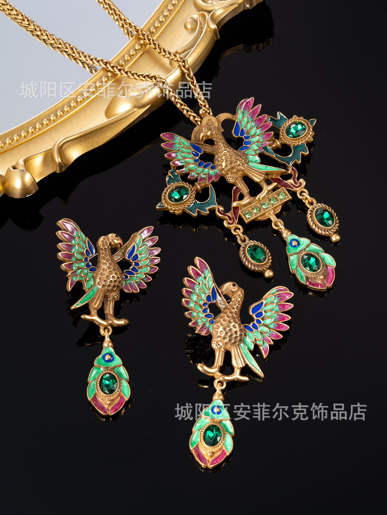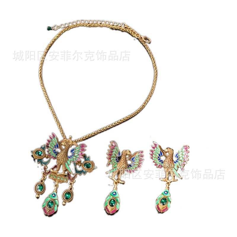 Qingdao Vintage Enamel Bird Stud Necklace Set Vintage New Chinese Style Bird Stud Necklace Set