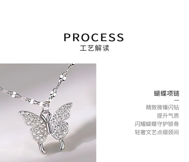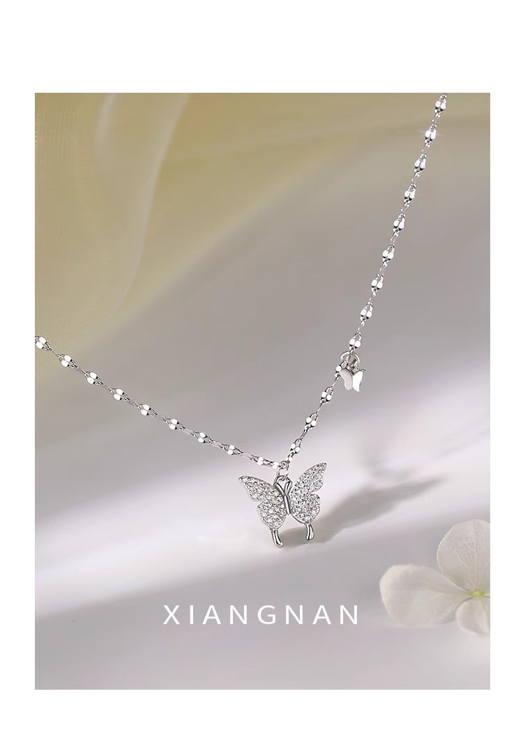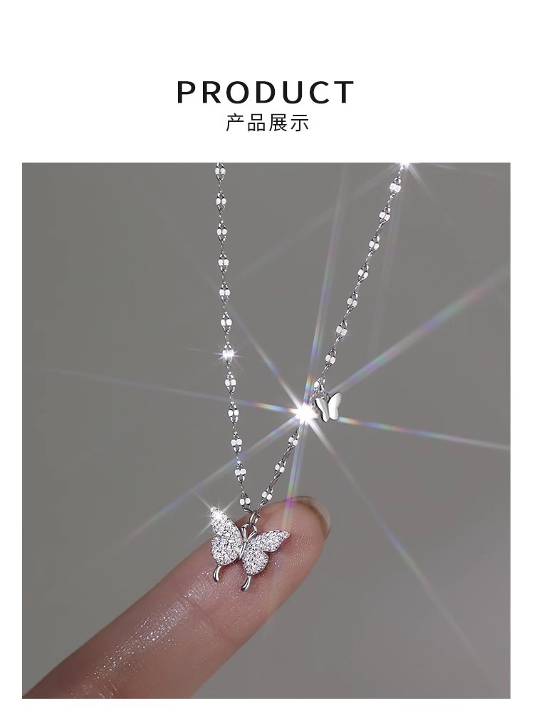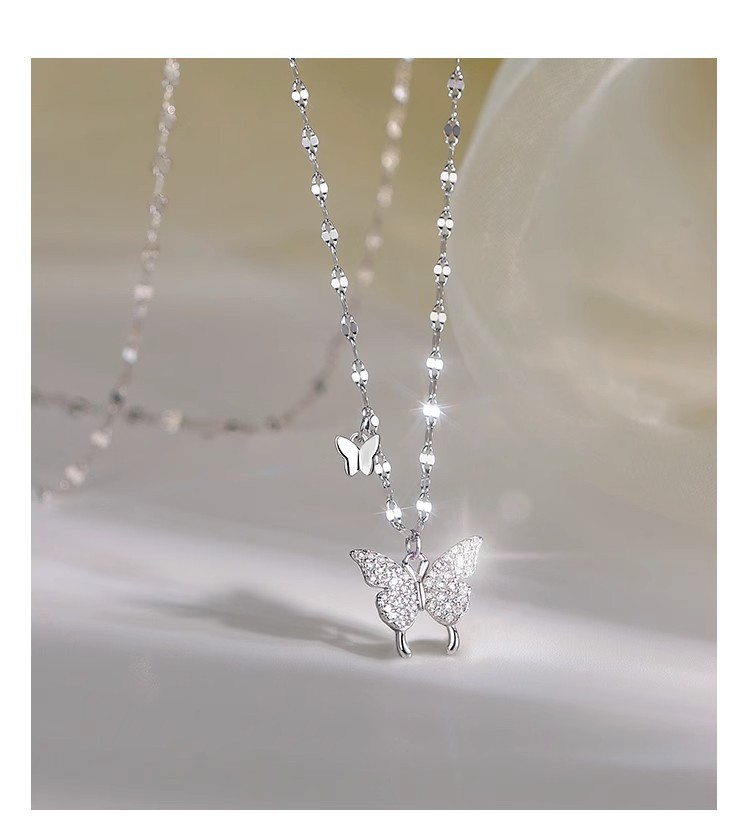 Titanium Steel Non-Fading Sparkling Butterfly Necklace Women's Summer Ins Accessible Luxury Niche Design Clavicle Chain Full of Diamonds 2025 New