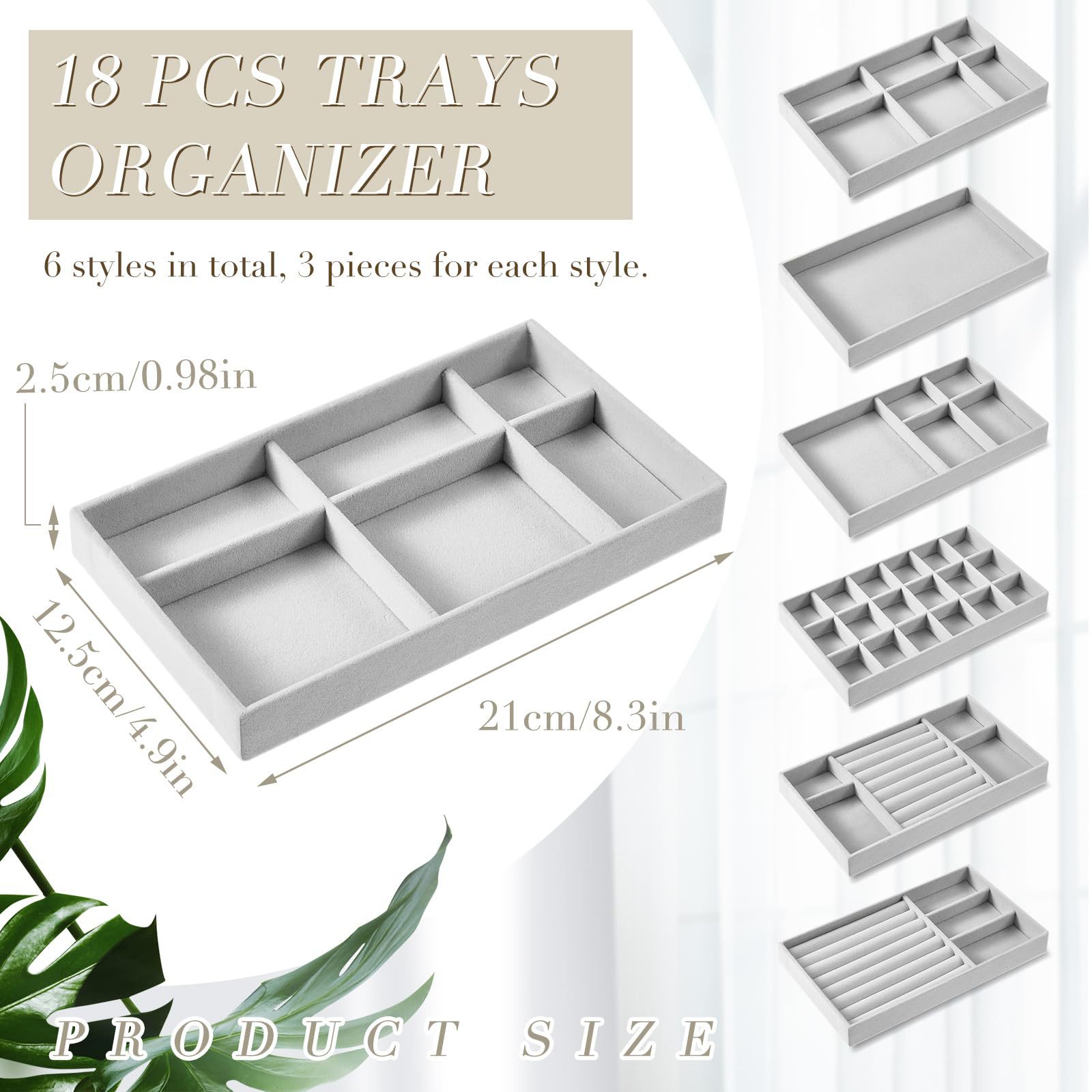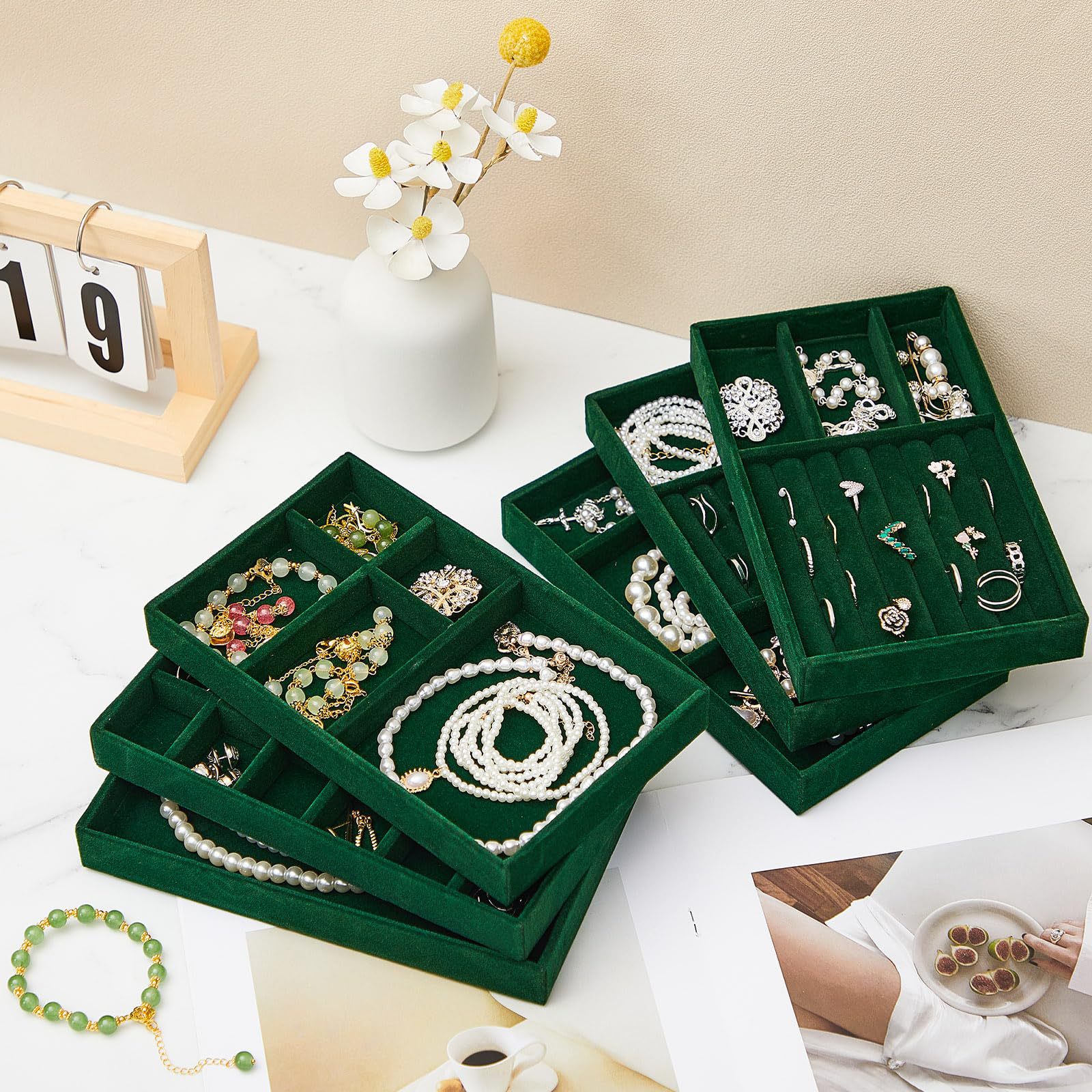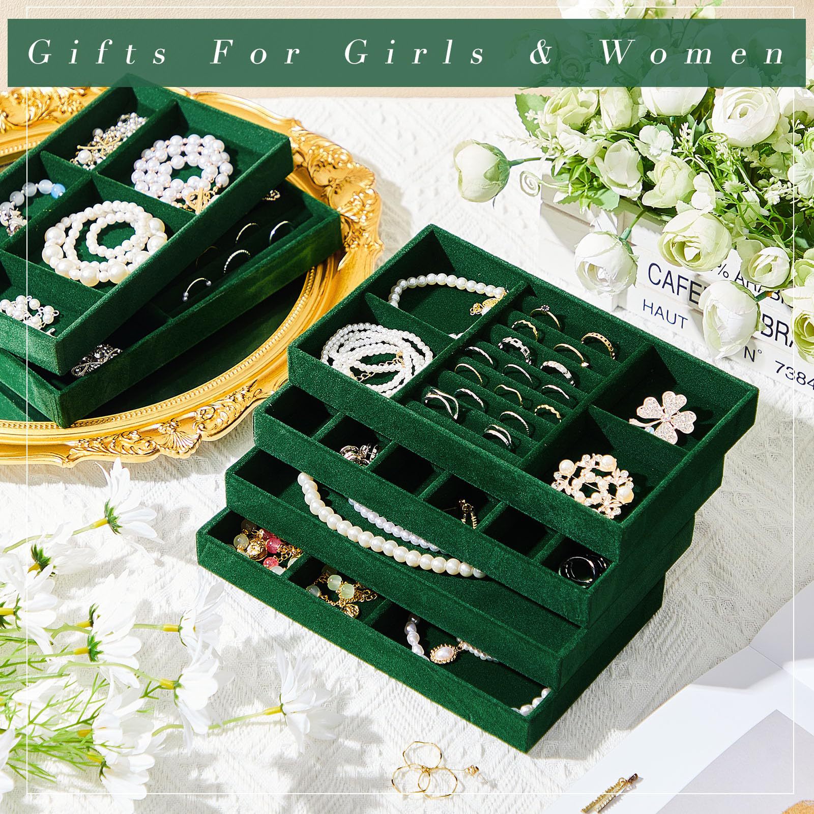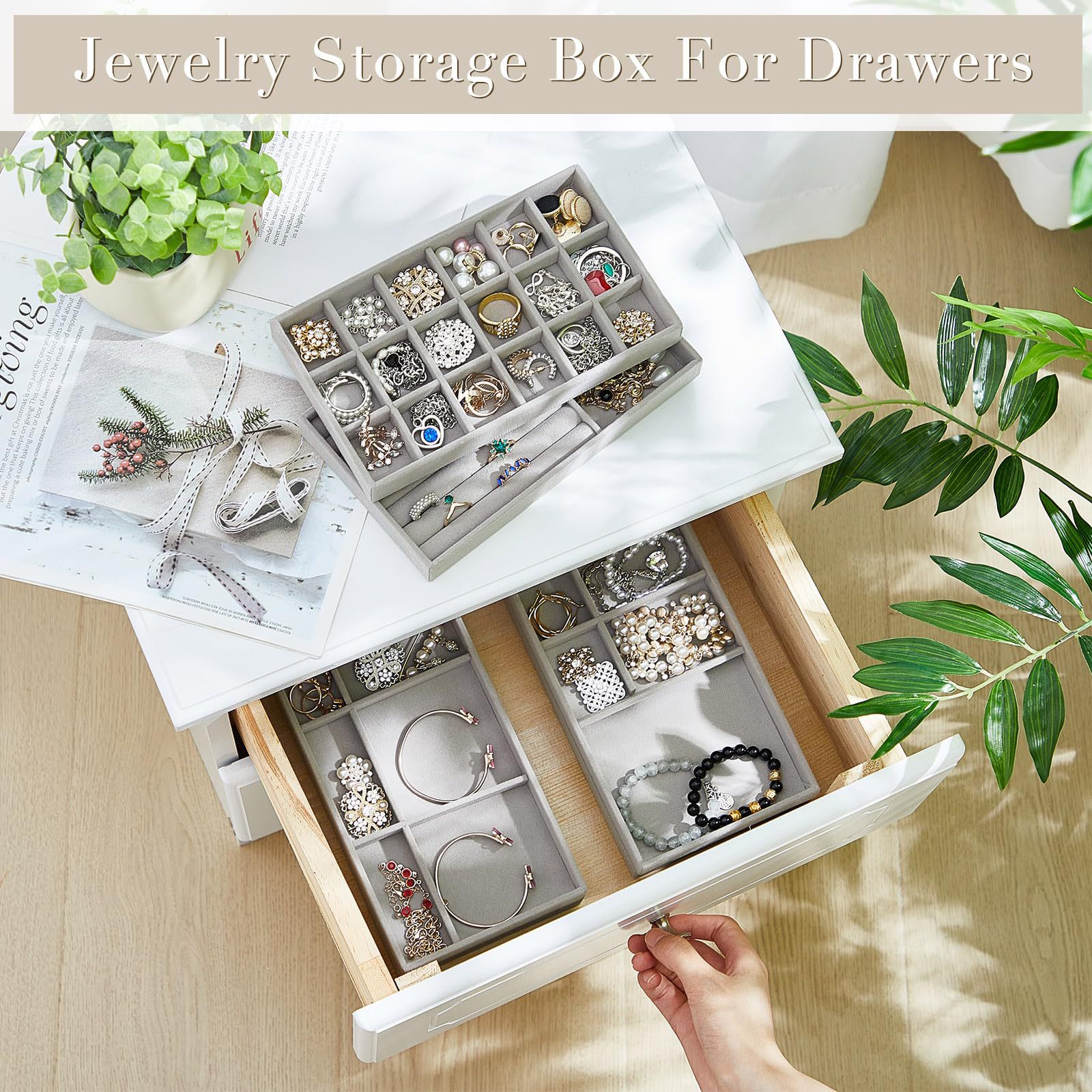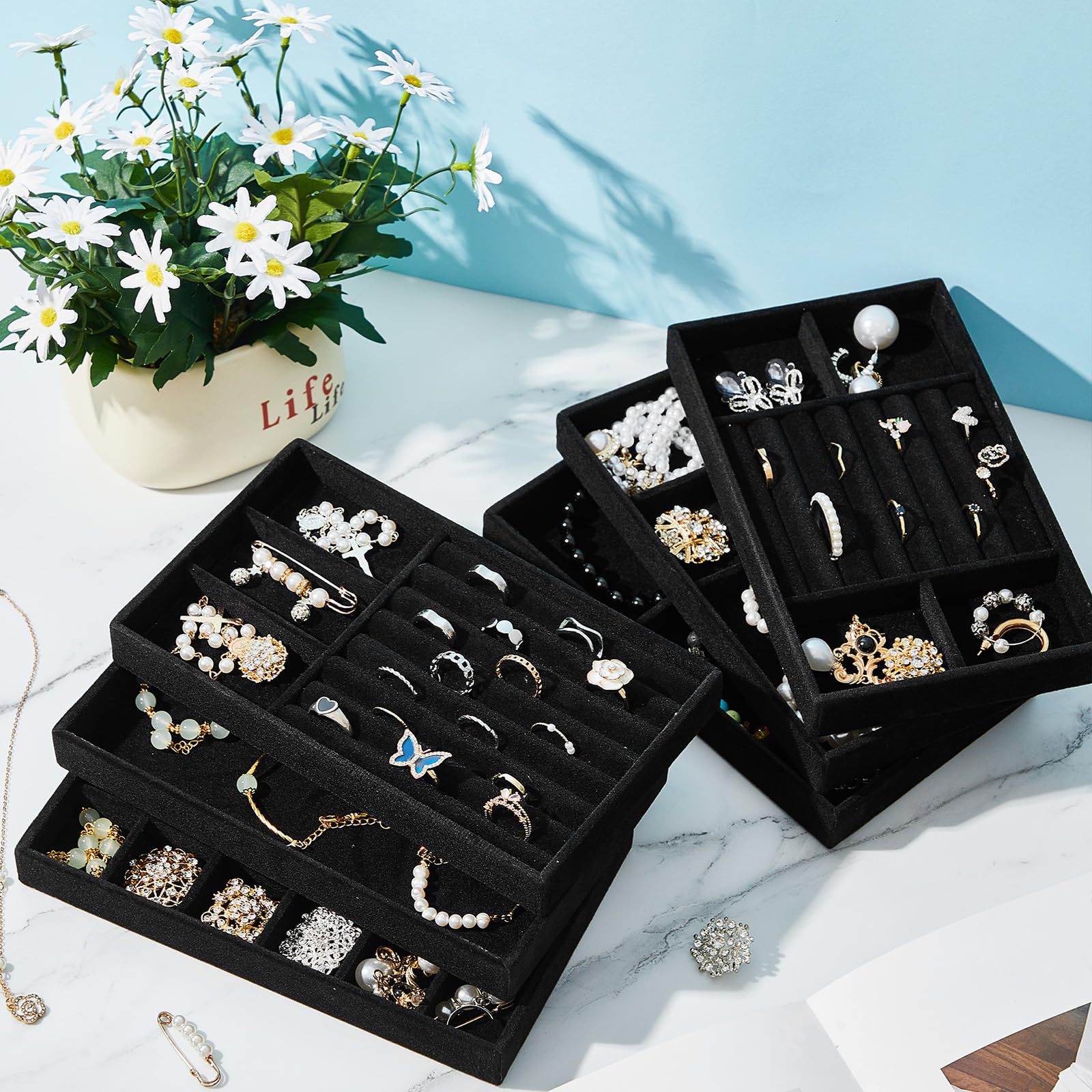 Velvet Jewelry Tray Jewelry Drawer Storage Box Jewelry Box Divider Display 6-Piece Combination Jewelry Set