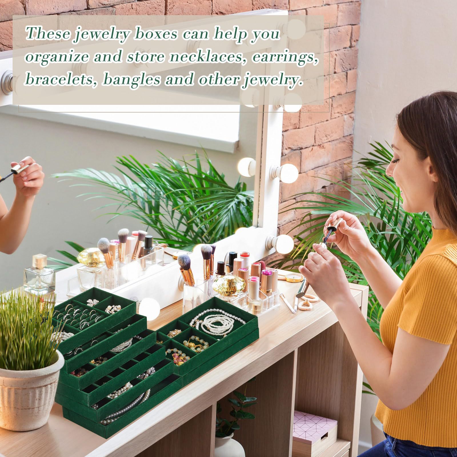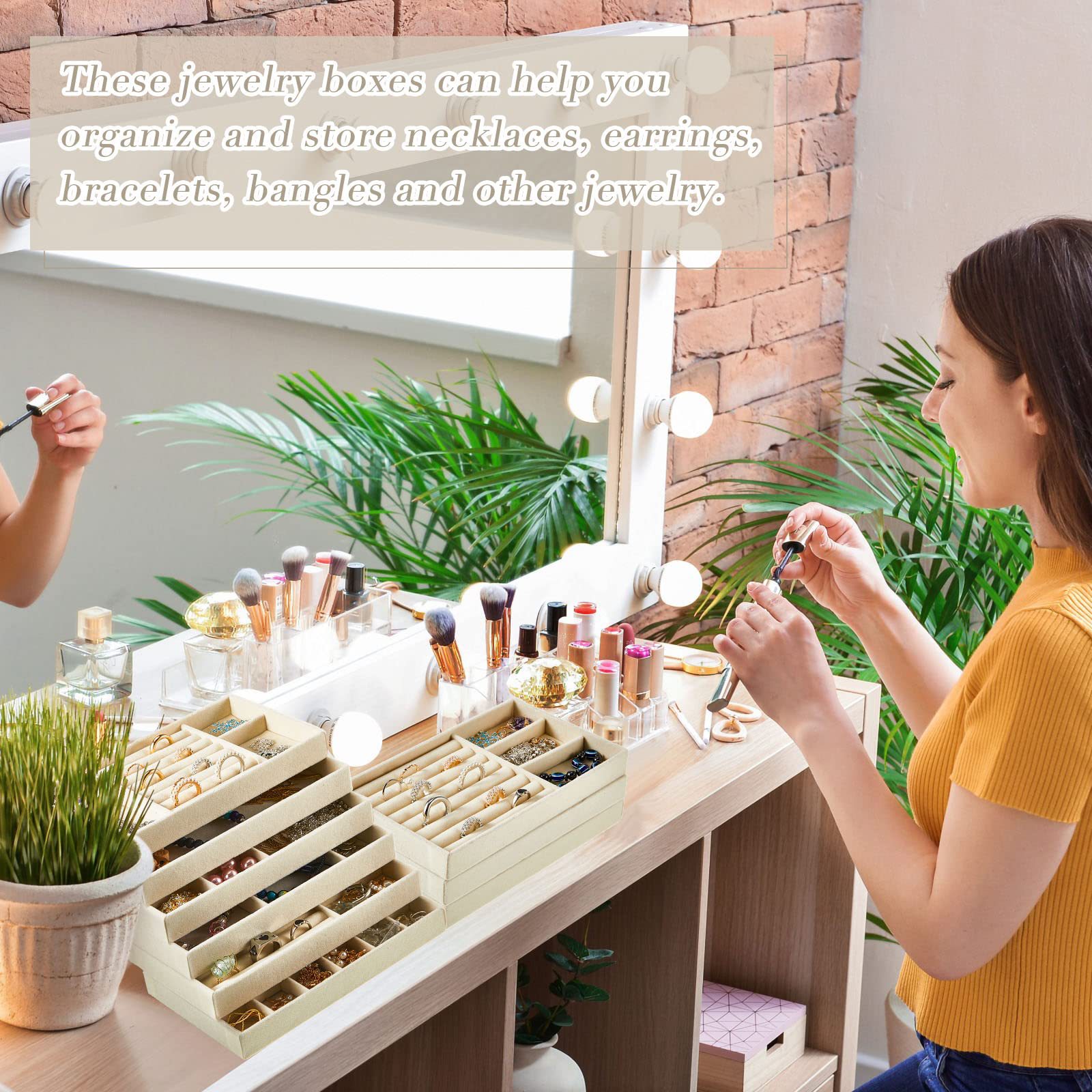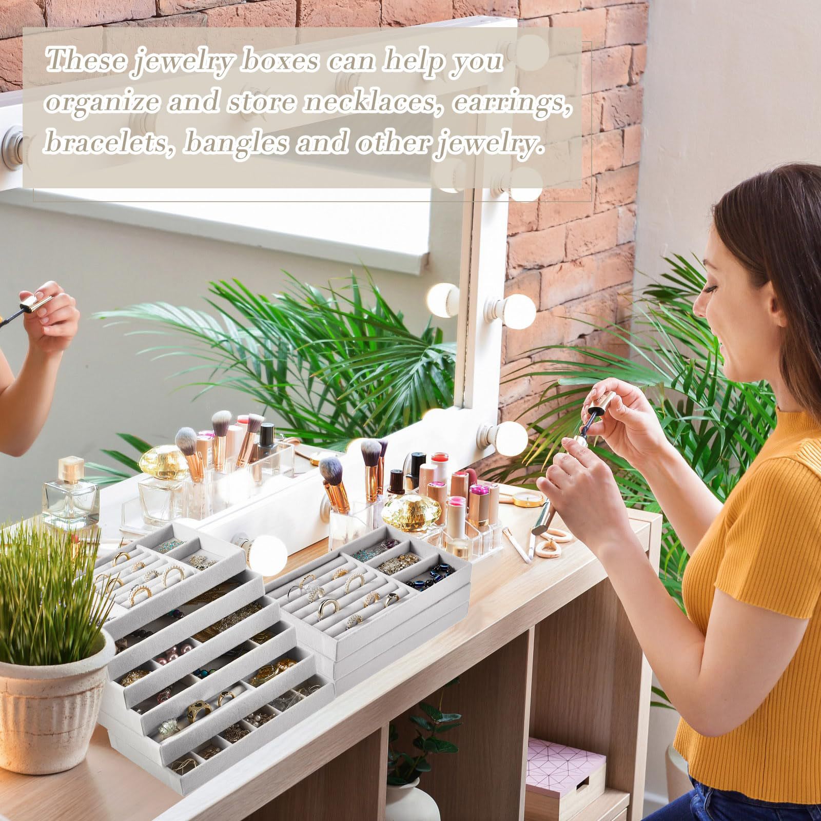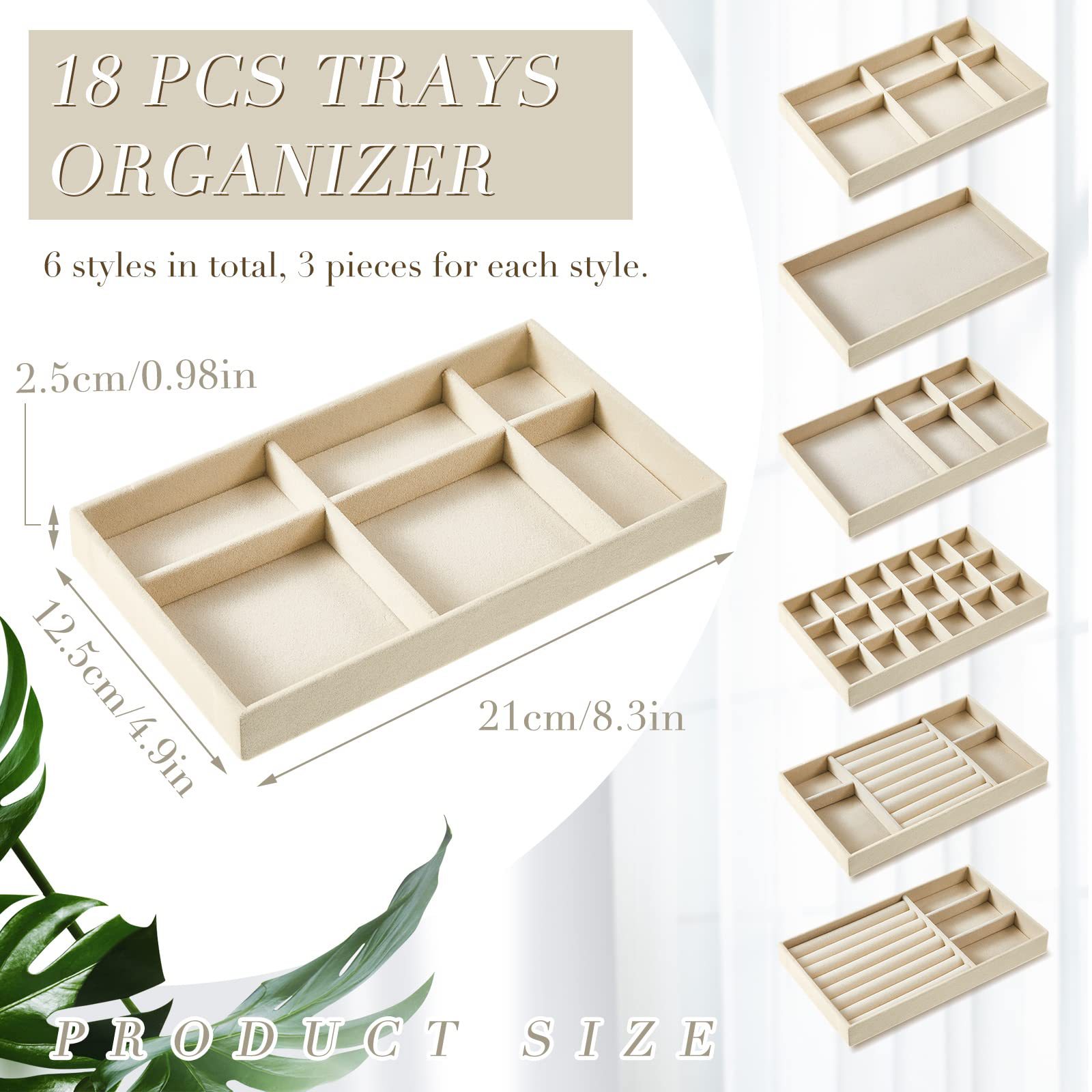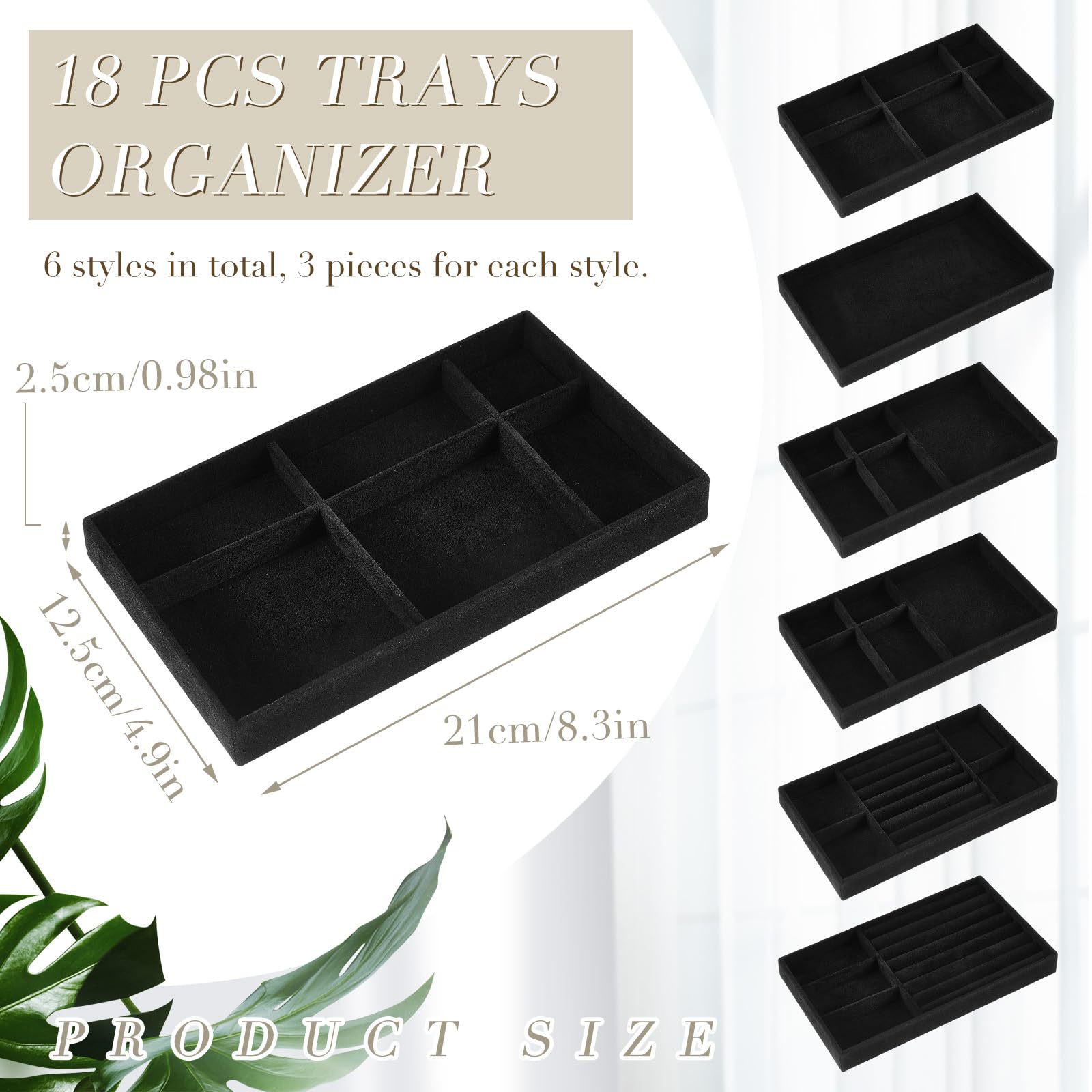 Velvet Jewelry Tray Jewelry Drawer Storage Box Jewelry Box Divider Display 6-Piece Combination Jewelry Set
