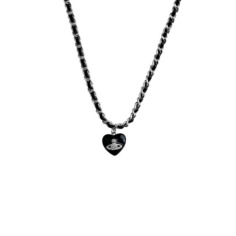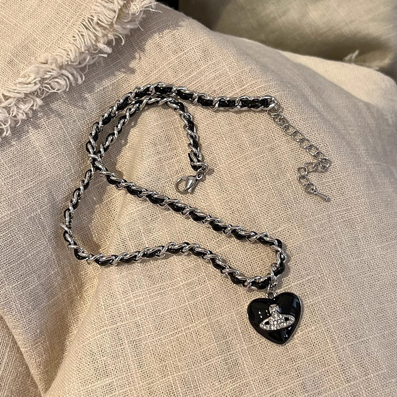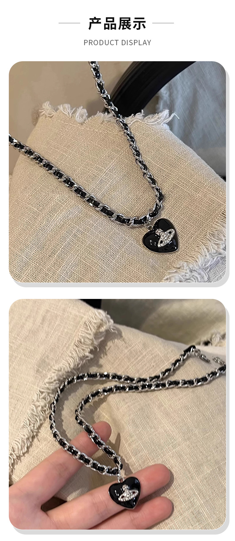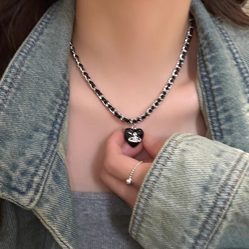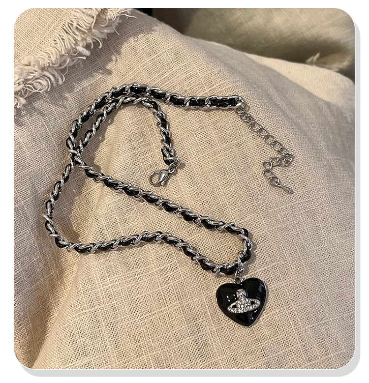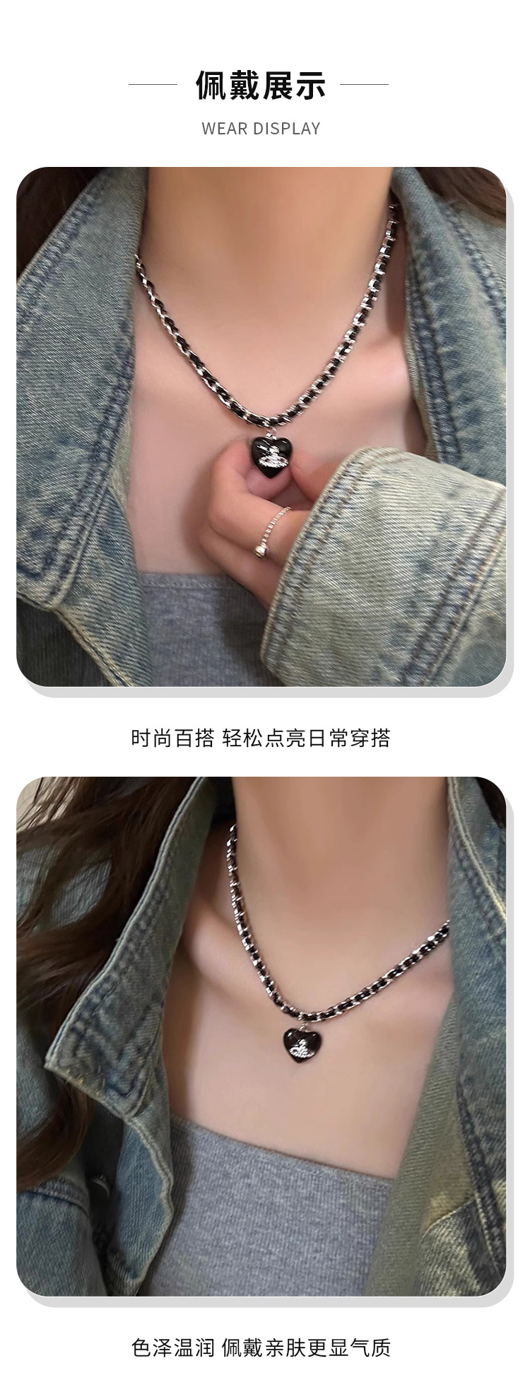 Black Love Star Pendant Necklace, Feminine Braided Leather Rope, Clavicle Chain, Fashionable Sweet and Cool Girl Necklace