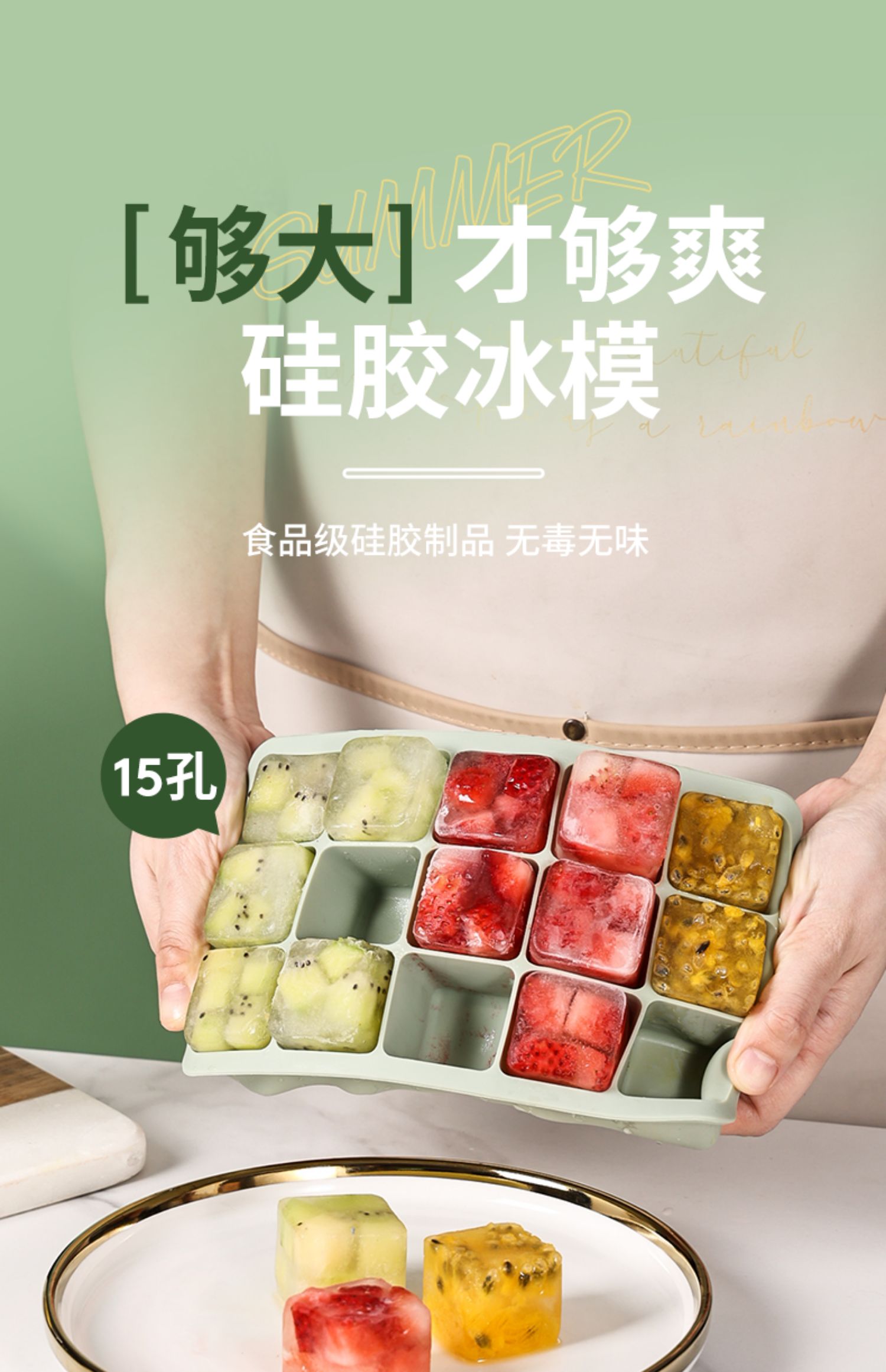 Color: [maternal and infant grade silicone upgraded and thickened] [15 large ice cubes] bean green