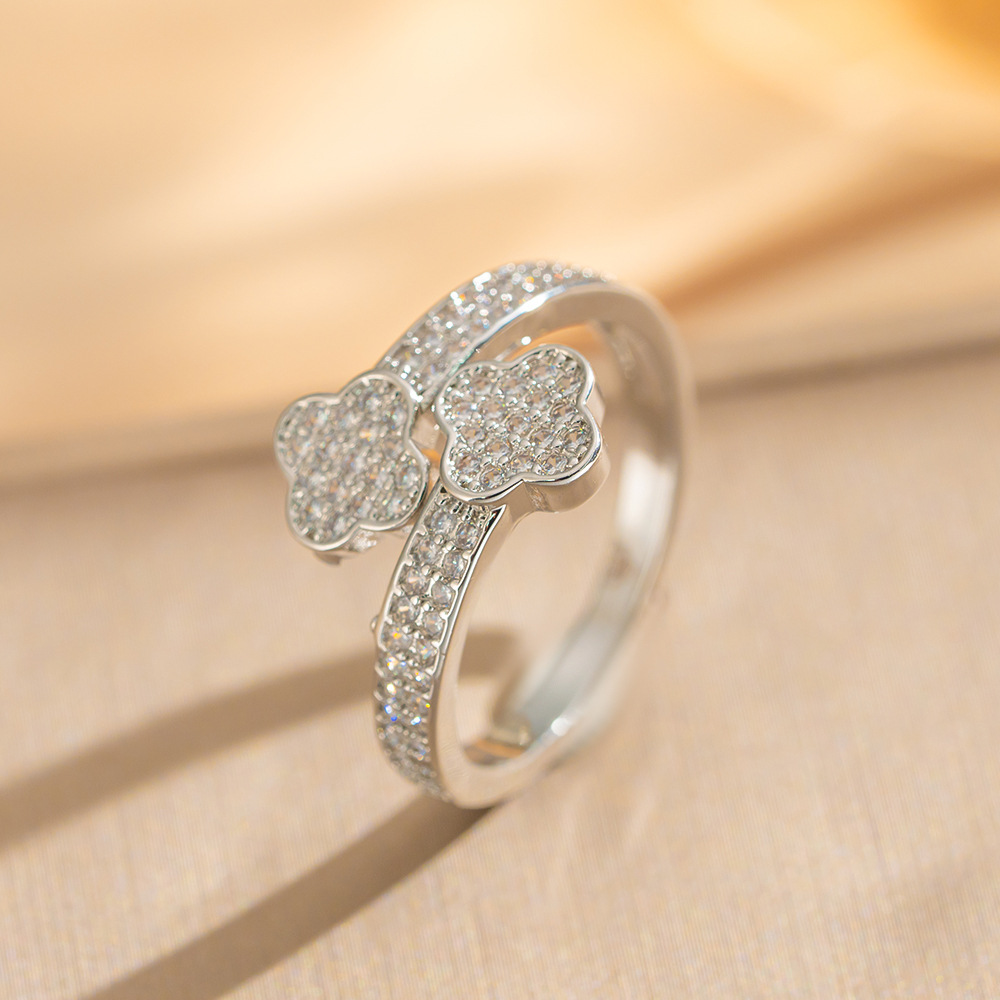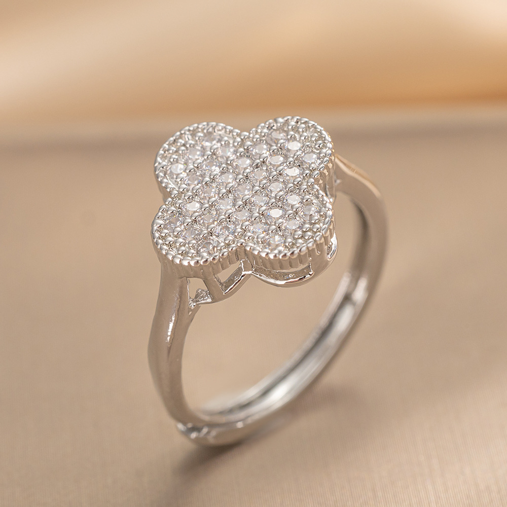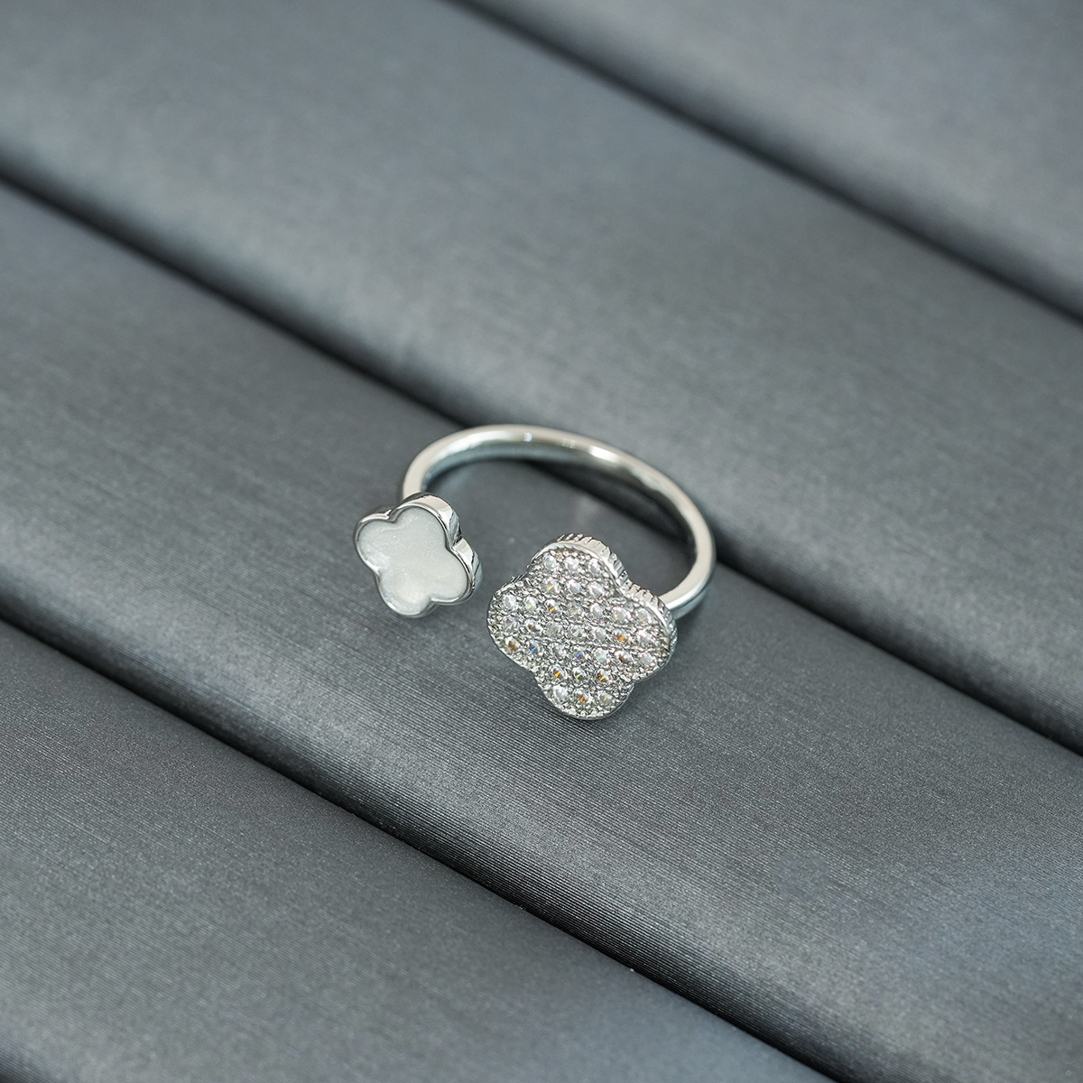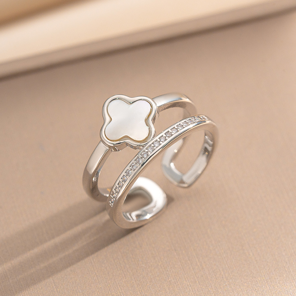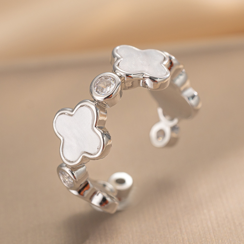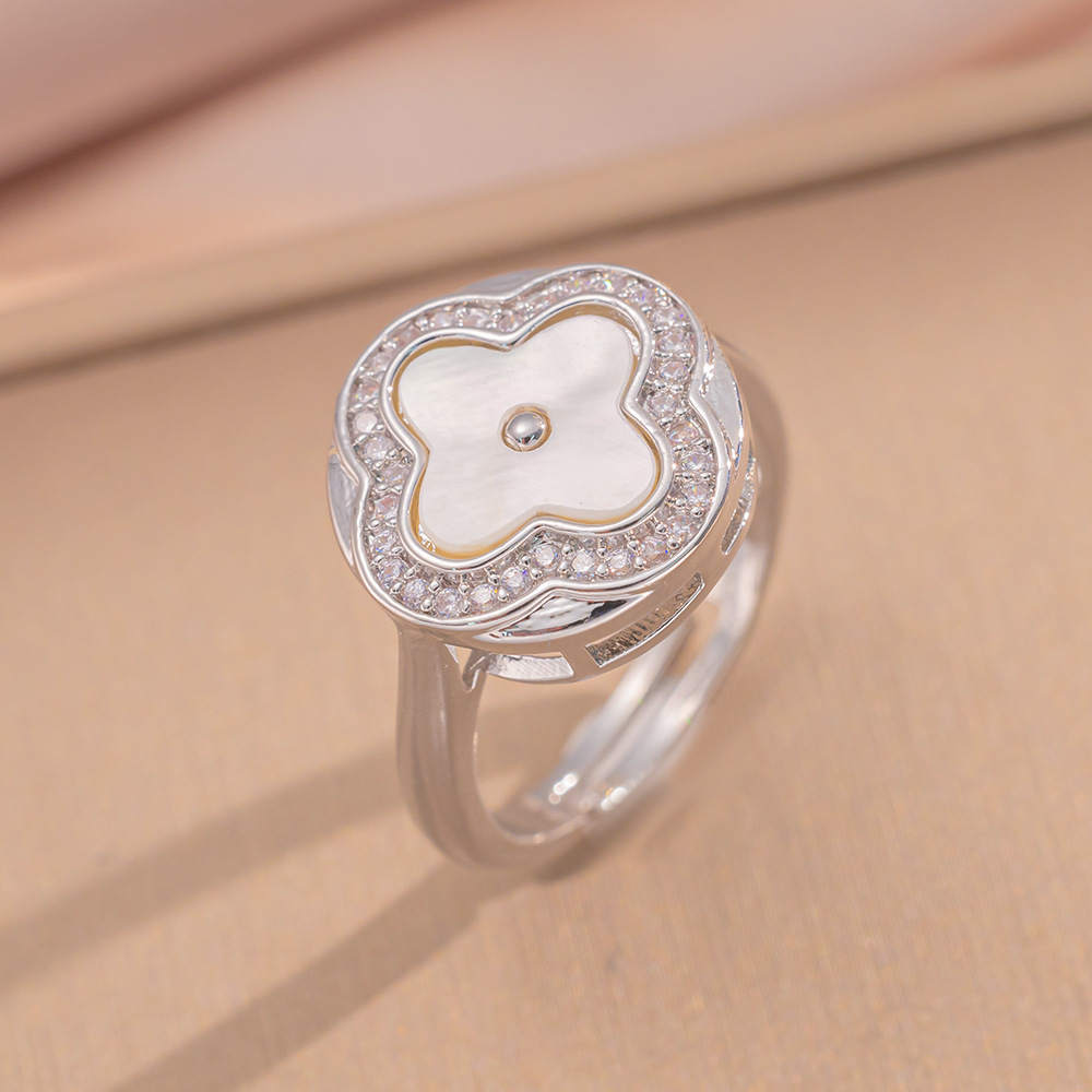 Color: 8880 silver white shell rotating four-leaf clover ring
