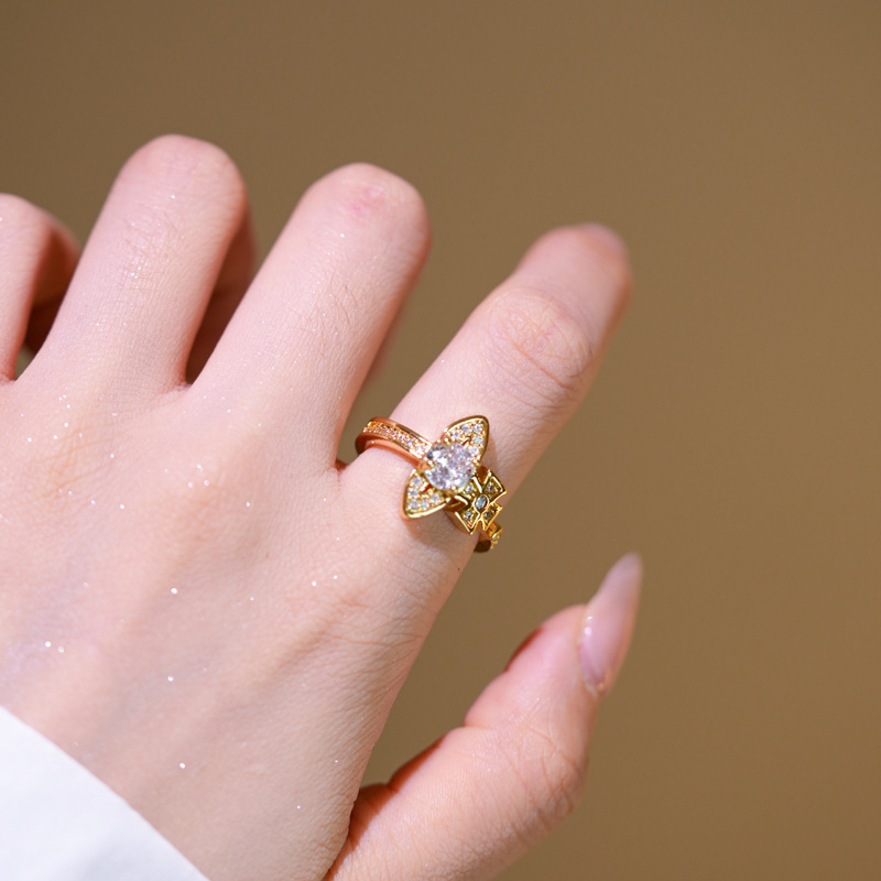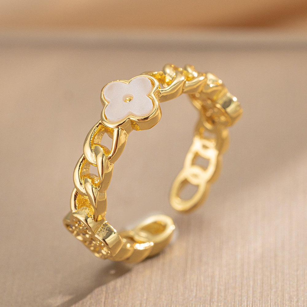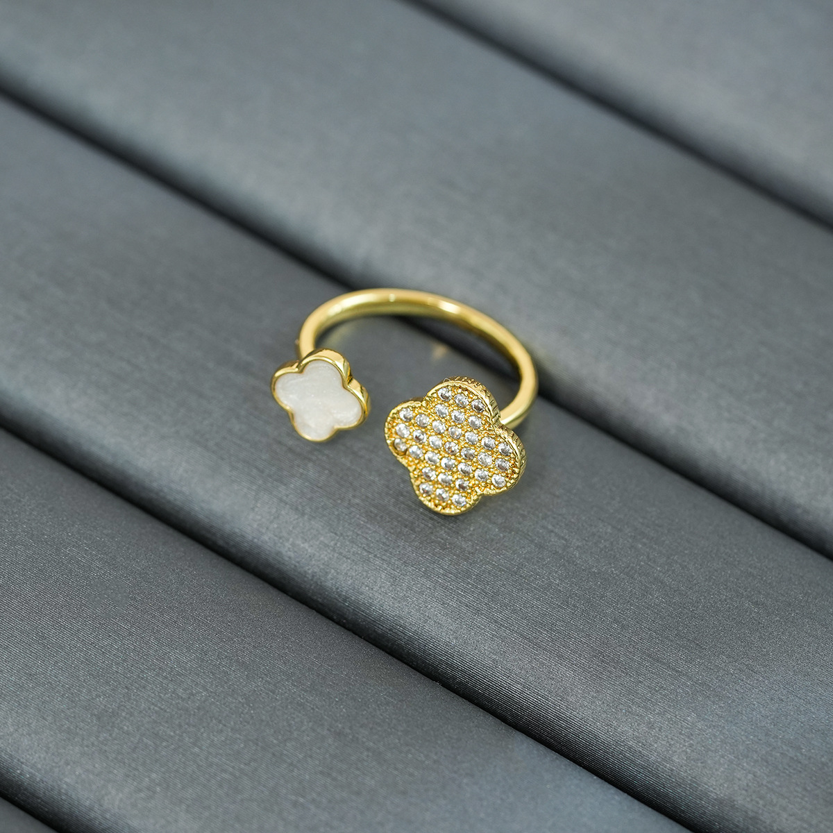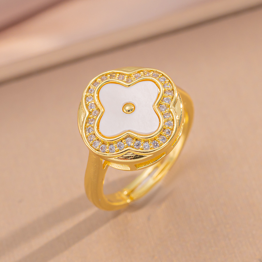 Color: 8880 gold and white shell rotating four-leaf clover ring