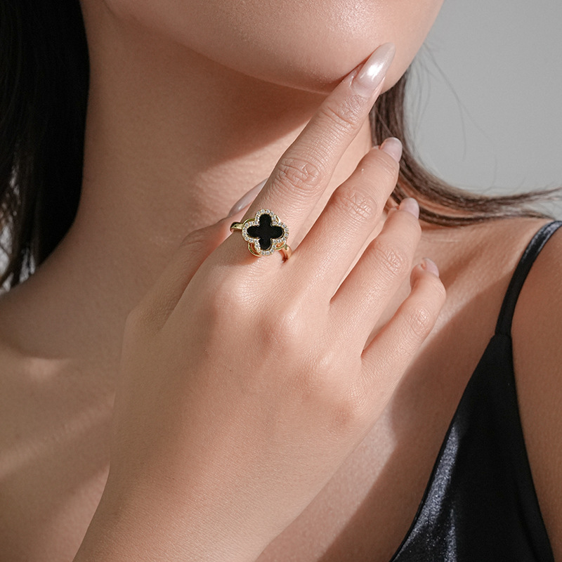 Color: 8880 gold and black shell rotating four-leaf clover ring
