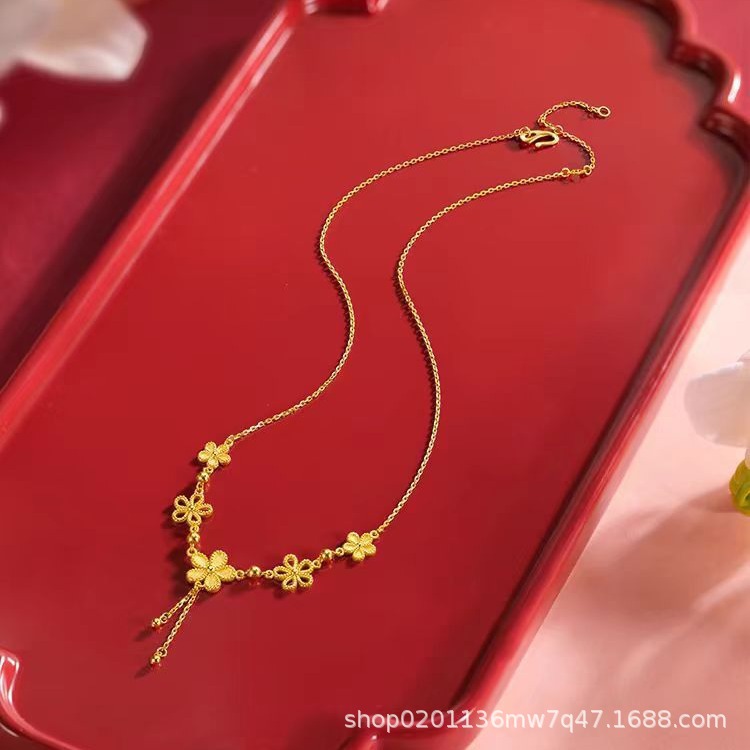 Zhoujia's Same Wedding Series Peach Blossom Necklace Bracelet Ring Three-Piece Set Gold Peach Blossom Wedding Ring Set