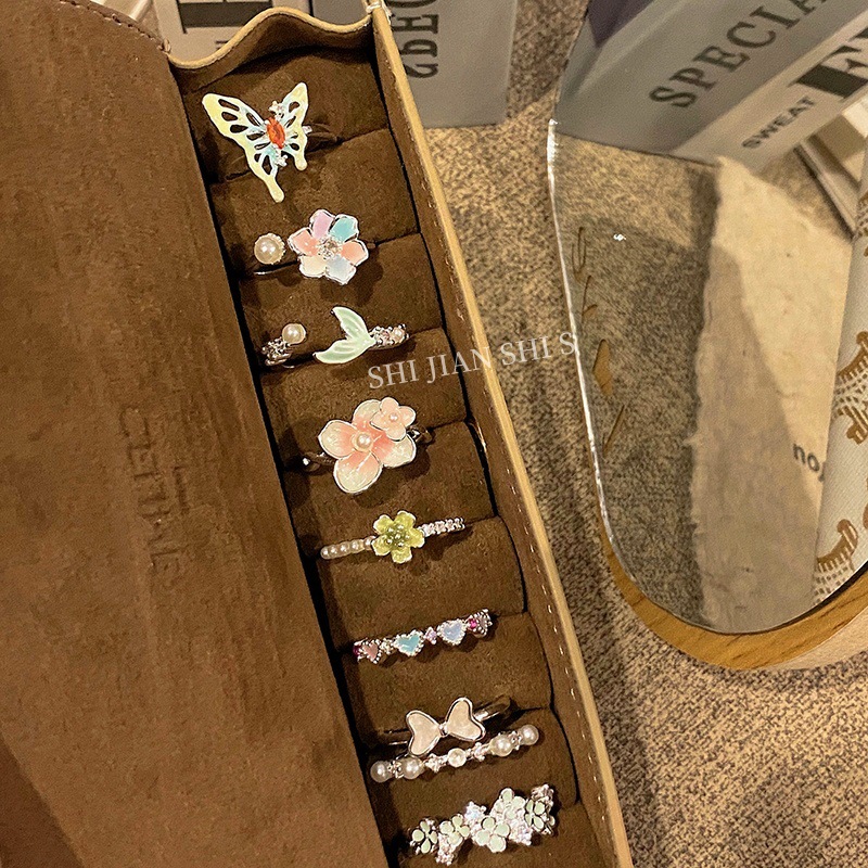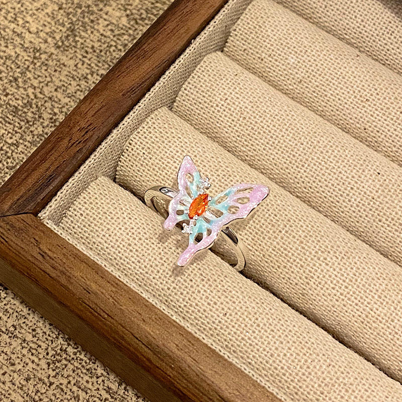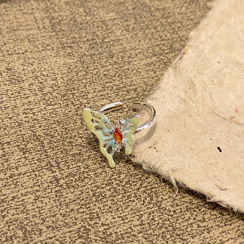 Color: No. 8 [light oil green hollow small butterfly open ring]