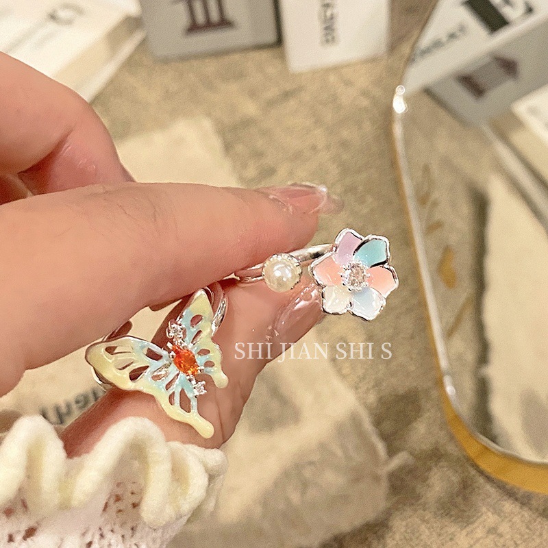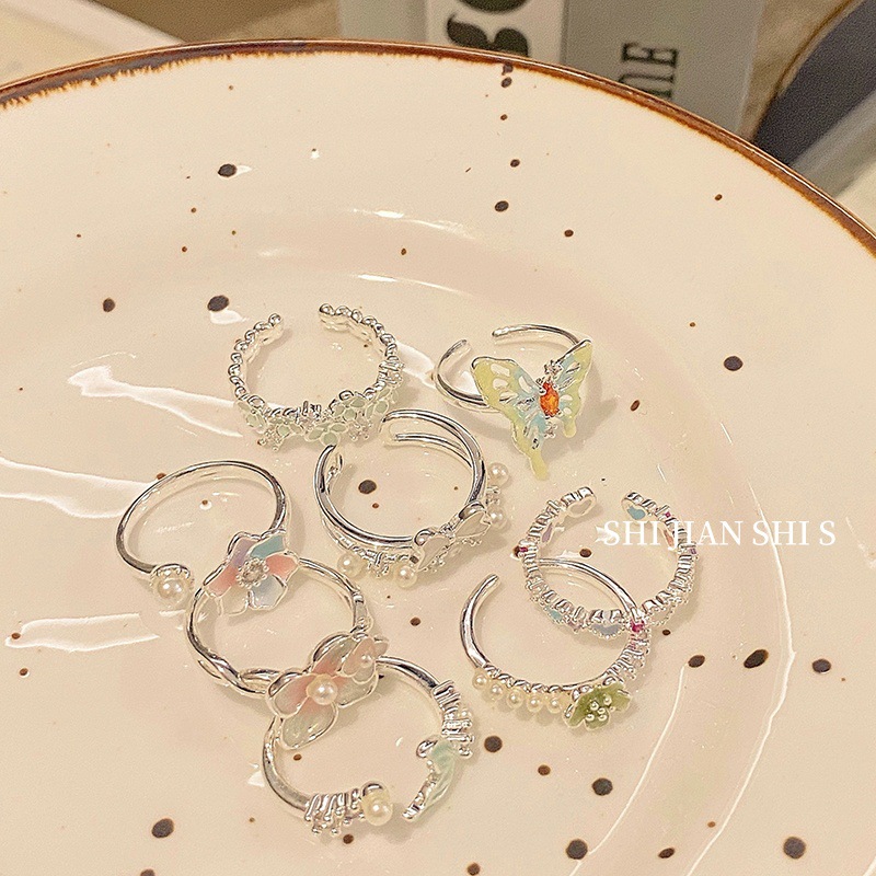 Color: No. 6 [cream double-layered butterfly pearl open ring]
