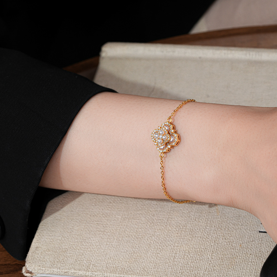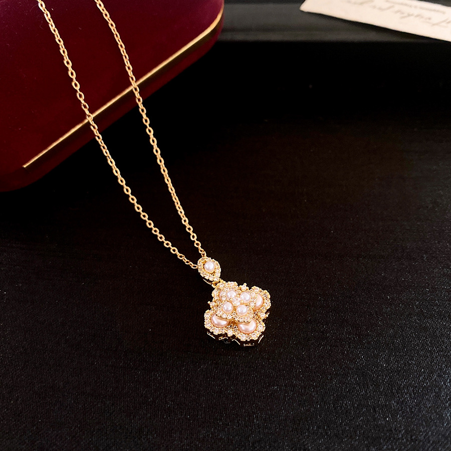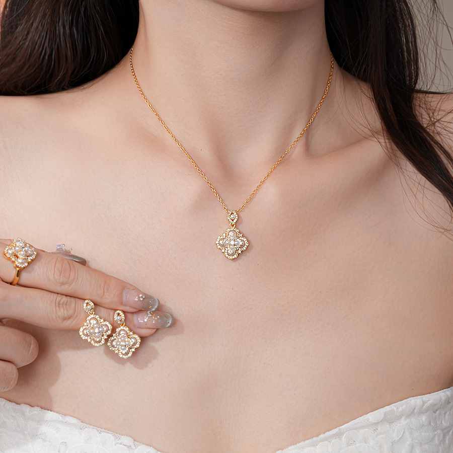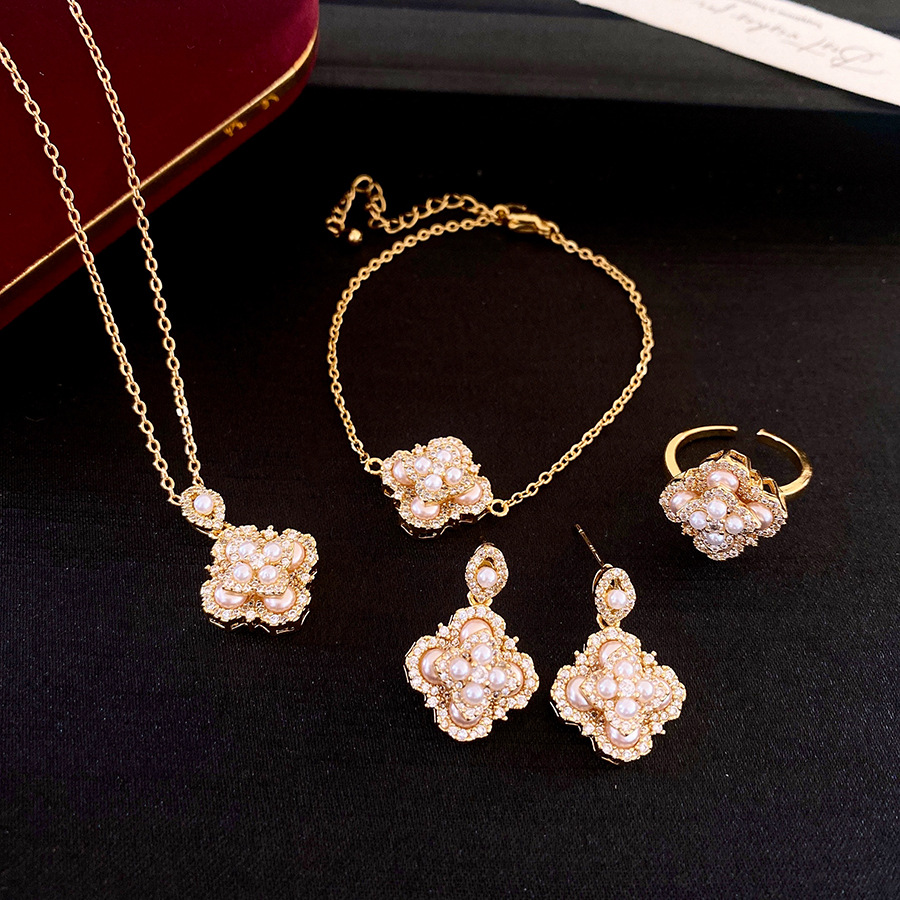 Real Gold Electroplating French Retro Zircon Flower Necklace Accessible Luxury High-End Clavicle Chain Niche Design Jewelry Set