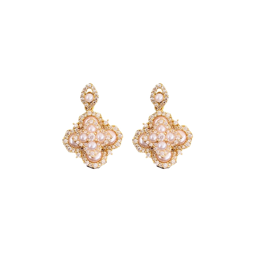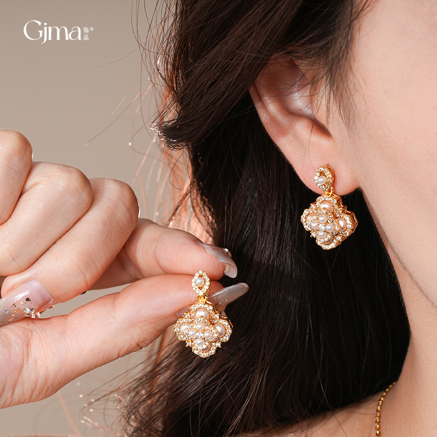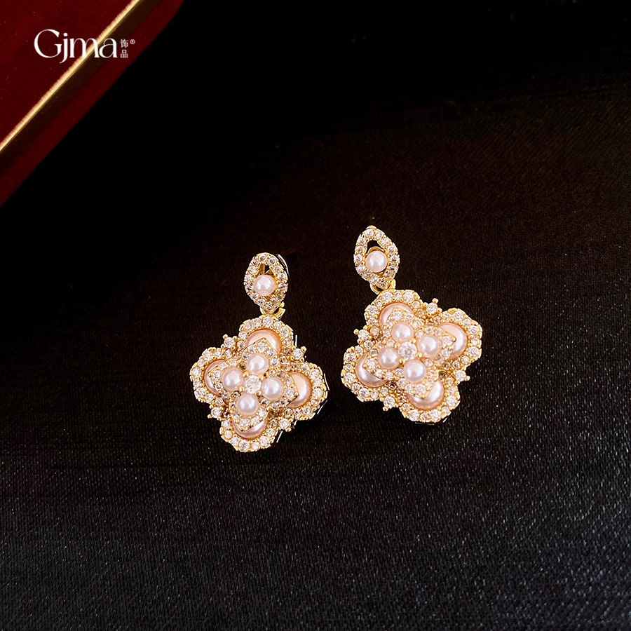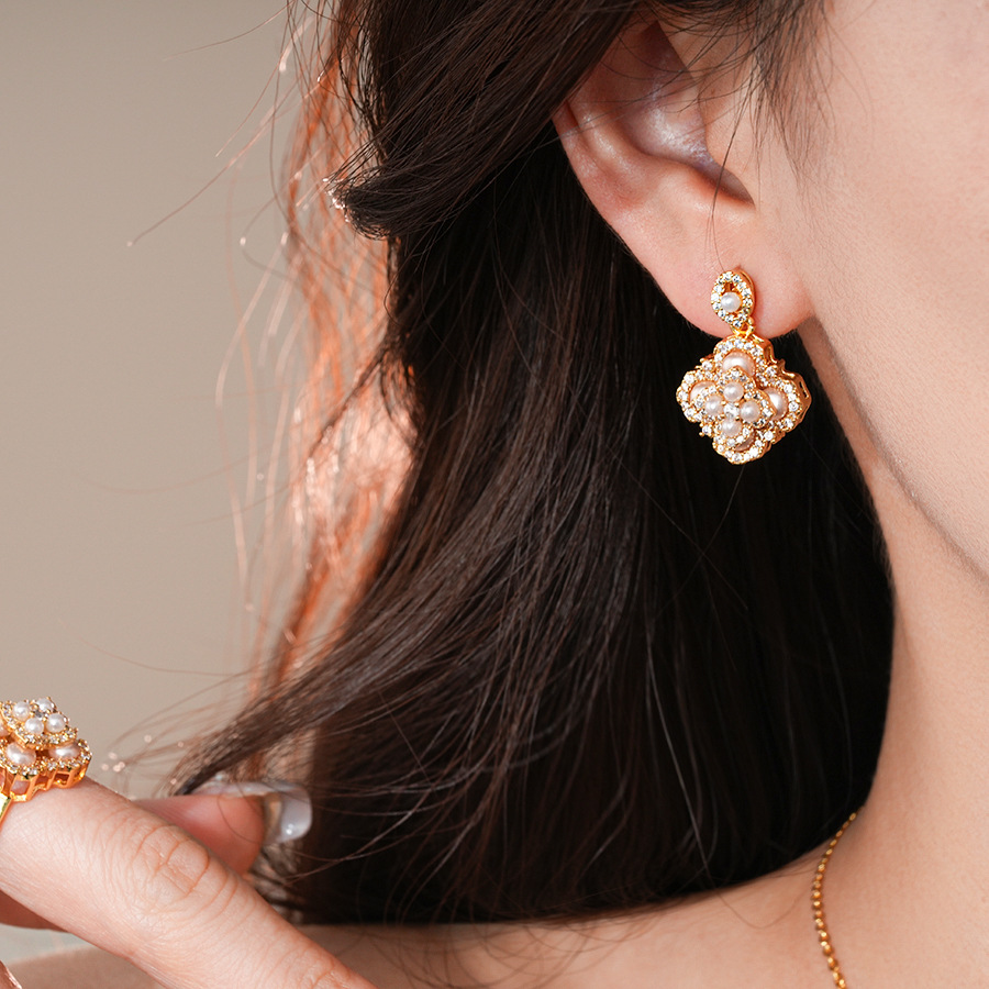 Real Gold Electroplating French Retro Zircon Flower Necklace Accessible Luxury High-End Clavicle Chain Niche Design Jewelry Set
