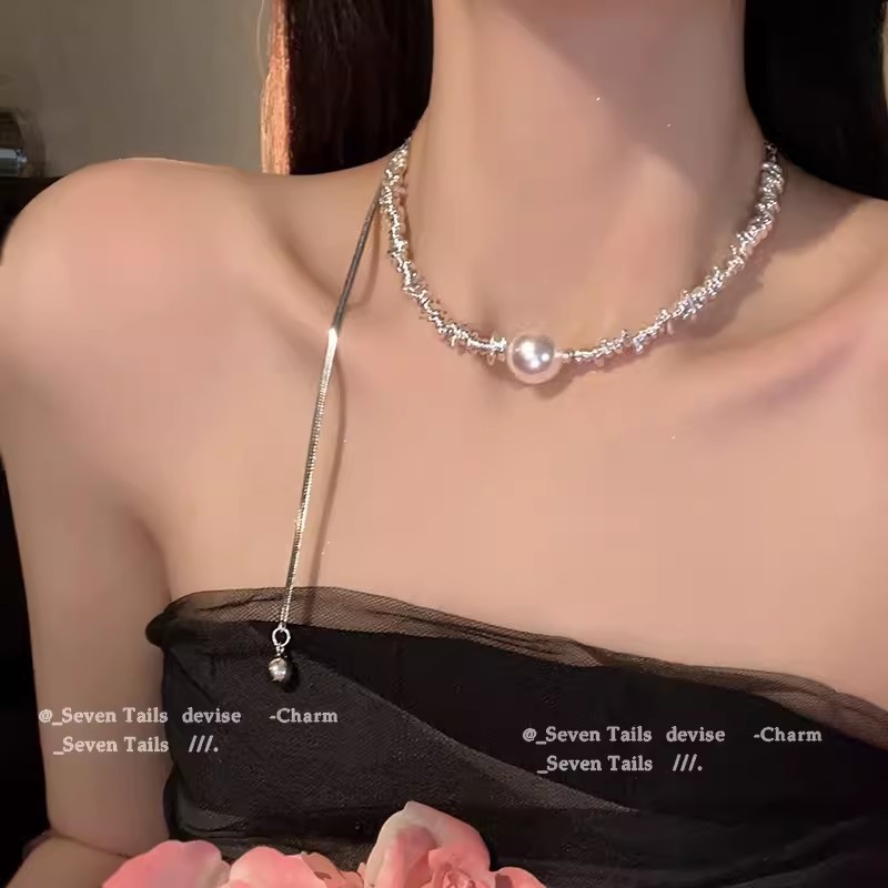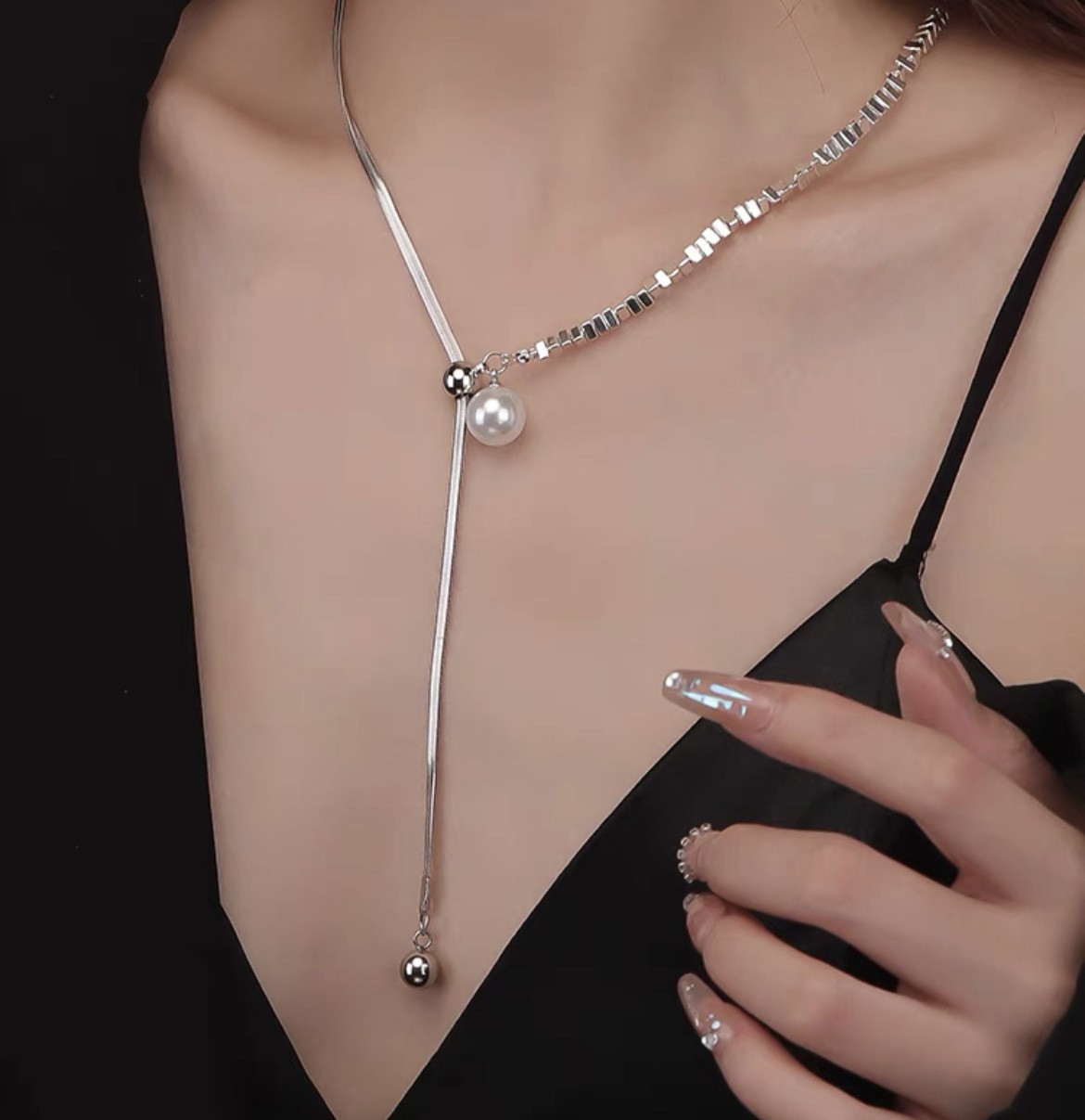 Color: Triangular broken silver pearl necklace (pull-out type)