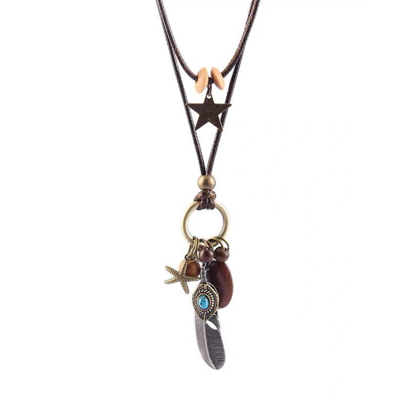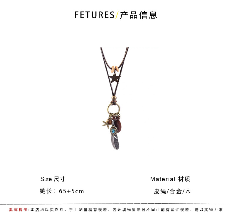 Ethnic Style Retro Feather Soul Collision Couple Necklace European and American Cross Chain Hip-Hop Rap American Pendant Accessories